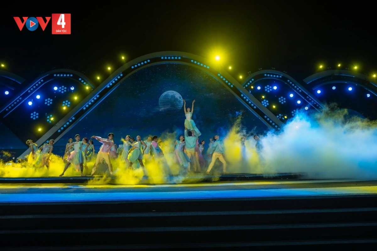 Lần đầu tiên, sân khấu DIFF 2025 được thiết kế trên diện tích hơn 1.605 m², lớn hơn gấp đôi so với sân khấu các năm. Đây là sân khấu có quy mô hoành tráng nhất trong các kỳ DIFF. Lấy cảm hứng từ vẻ đẹp thiên nhiên Đà Nẵng, sân khấu được thiết kế tái hiện hình ảnh Ngũ Hành Sơn bên biển lớn, nổi bật ở trung tâm là viên ngọc tỏa sáng giữa đại dương. Hình ảnh núi liền sóng biển thể hiện sự hòa hợp, đoàn kết dân tộc. Sân khấu còn tích hợp những công nghệ trình diễn hàng đầu, cho phép du khách tương tác và trải nghiệm pháo hoa qua smartphone, một bước tiến mới mẻ và thú vị trong trải nghiệm của du khách.