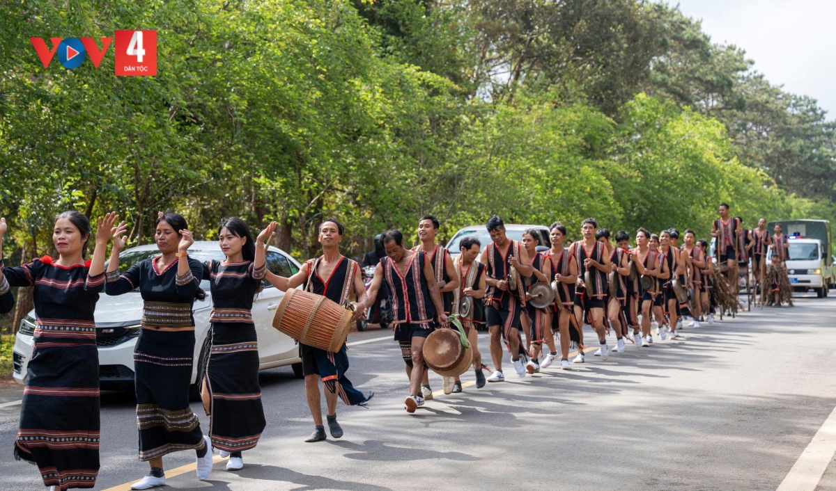 Khoảng 50 nghệ nhân trong trang phục truyền thống của đồng bào Xơ Đăng (Mơ Nâm) tham gia diễu hành, trình diễn cồng chiêng, múa xoang, nhạc cụ dân tộc và đi cà kheo dọc tuyến phố dài gần 5 km, từ ngã 5 đường Phạm Văn Đồng đến sân khấu chợ phiên Măng Đen. Tiếng chiêng ngân vang hòa cùng nhịp xoang rộn ràng khiến cả cung đường ngập tràn âm thanh và sắc màu văn hóa.