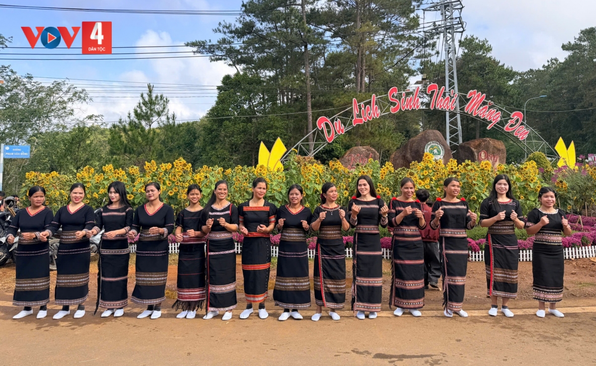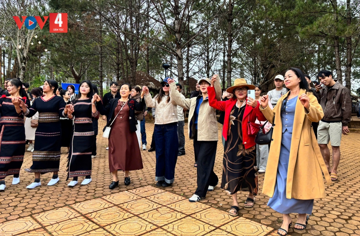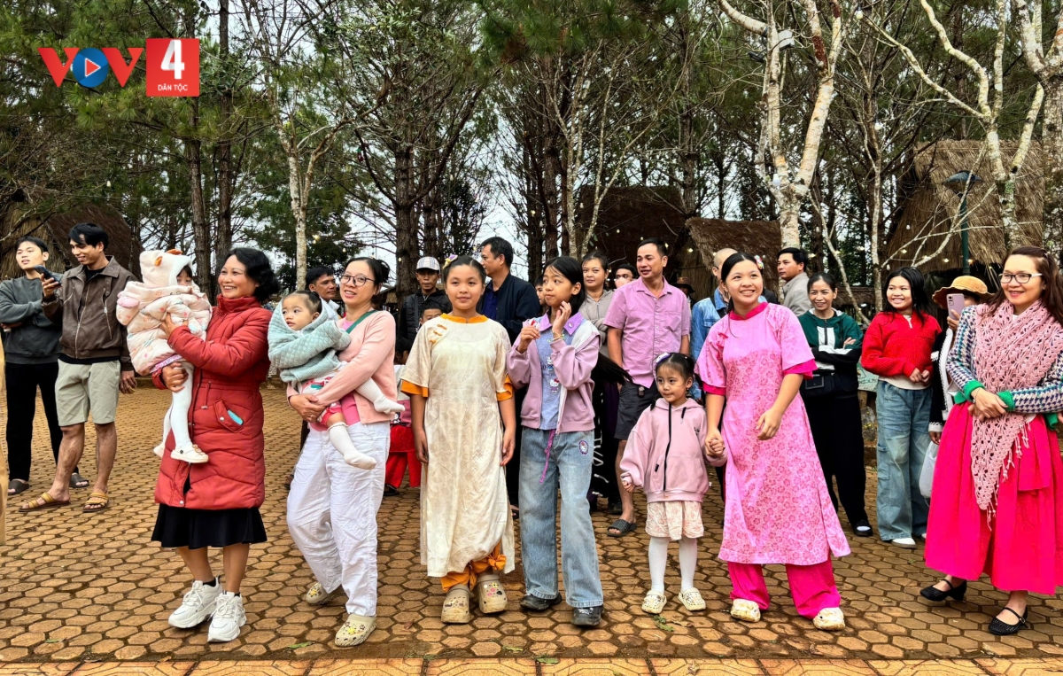 Các trò chơi dân gian như đi cà kheo, đẩy gậy; trình diễn trang phục truyền thống Mơ Nâm (nam và nữ) thu hút đông đảo người dân, du khách tham gia, cổ vũ. Nhiều du khách hào hứng hòa mình vào vòng xoang, ghi lại những khoảnh khắc đầu năm mới, niềm vui hiện rõ trên từng gương mặt.