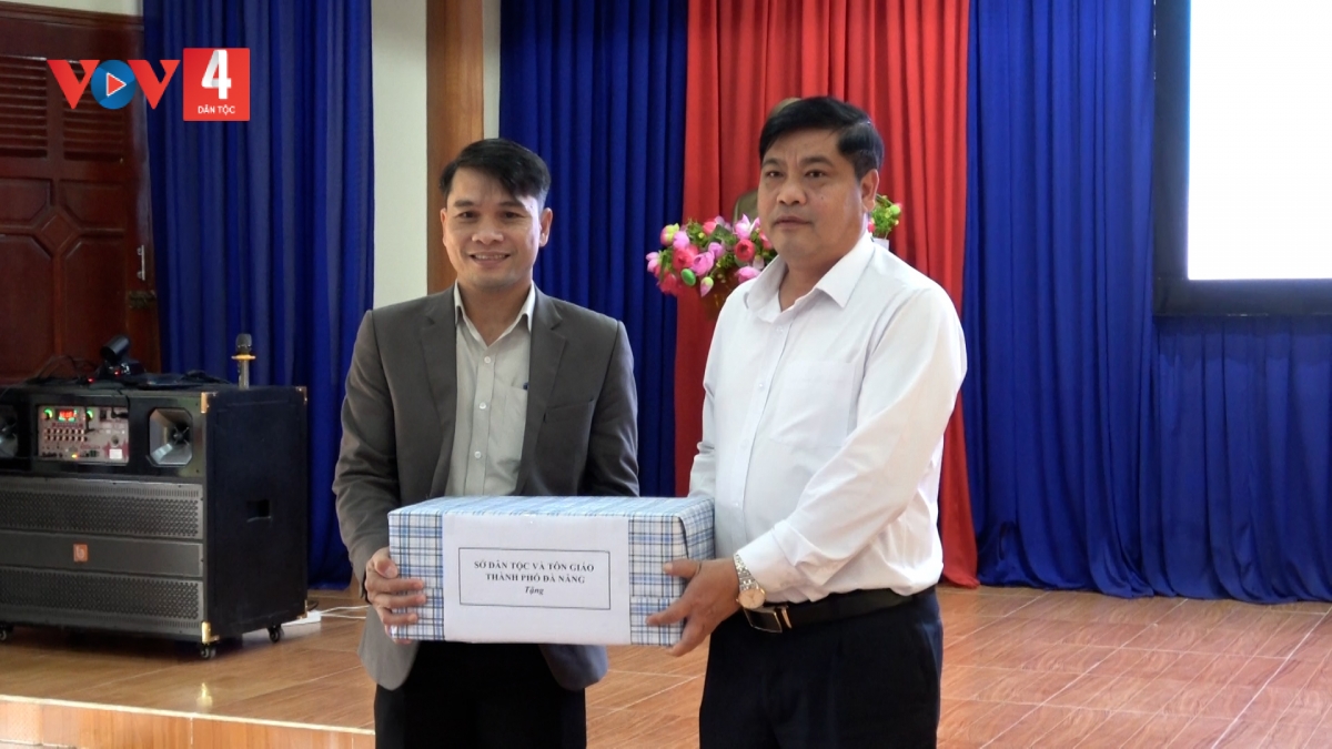 Tại đây, thay mặt Sở dân tộc và Tôn giáo thành phố Đà Nẵng. Ông Nguyễn Mạnh Hà đã ân cần thăm hỏi, động viên và trao tặng 7 suất quà cho 7 hộ bị ảnh hưởng nặng nề do cơn bão số 12 gây ra dẫn đến mất nhà tích người thân, mất nhà hoàn toàn, sạt mất nhà một phần. Mỗi suất quà gồm tiền mặt 1 triệu đồng. Đồng hành cùng đoàn có sự hỗ trợ của Bà Nguyễn Thị Nhung, Phó Chủ tịch Hội Doanh nhân trẻ thành phố Đà Nẵng cũng đã hỗ trợ cho các hộ trên với tổng tiền mặt 13 triệu đồng.