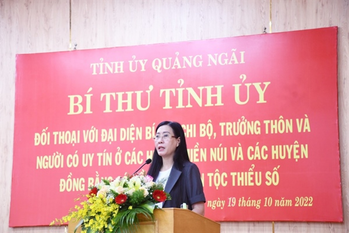 Mới đây, bà Bùi Thị Quỳnh Vân, Bí thư Tỉnh ủy, Chủ tịch HĐND tỉnh Quảng ngãi đã có buổi đối thoại với hơn 100 Bí thư Chi bộ, trưởng thôn và người có uy tín ở các huyện miền núi và các huyện đồng bằng có đồng bào dân tộc thiểu số về nhiều vấn đề mà người dân quan tâm. Nhiều ý kiến tâm huyết, trách nhiệm và thẳng thắn tại buổi đối thoại đã giải đáp và tháo gỡ nhiều vướng mắc của người dân.