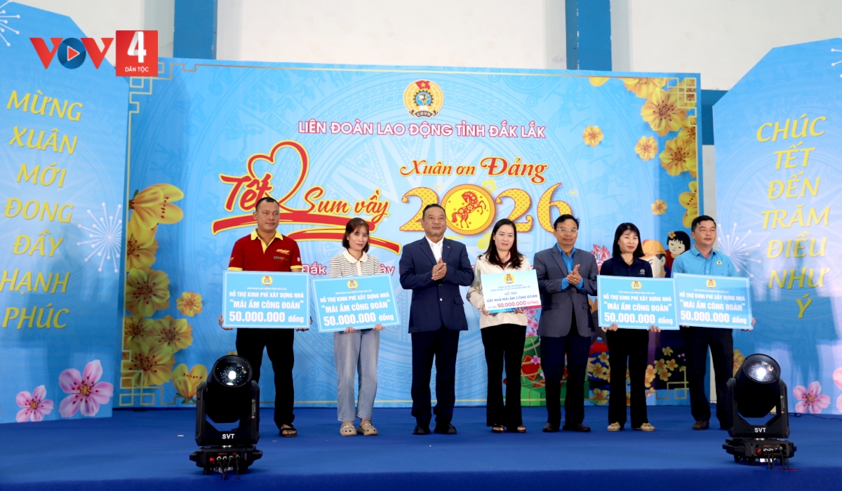 Trước đó, chương trình cũng được tổ chức tại khu vực phía Đông tỉnh Đắk Lắk, trao 300 suất quà Tết và hỗ trợ xây dựng 5 căn nhà “Mái ấm Công đoàn” cho đoàn viên, người lao động khó khăn.