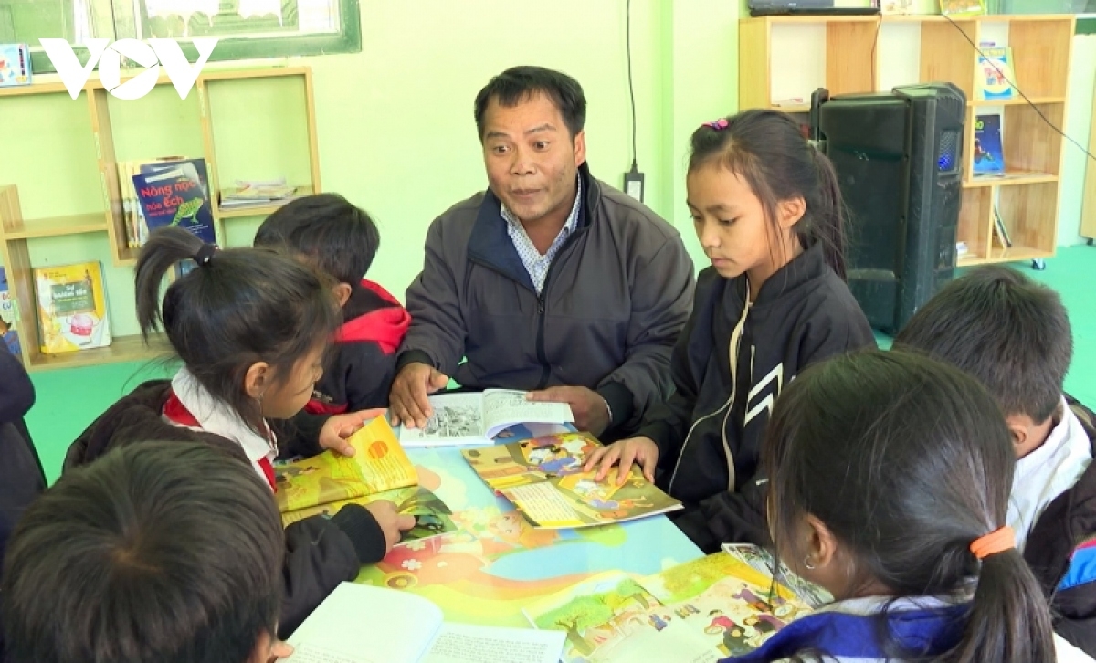 Coh cr’chăl pa bhrợ, thầy Pơloong Đíp ta luôn pa zay pa liêm bh’nơơn pa too pa choom coh đâu. Muy thư viện k’tứi âng thầy bhrợ t’vaih tơợ zên t’pâh lâng zên c’la đoo, năc ơy zooi học sinh ma nuyh acoon coh bơơn đọc sách. Bấc xa nay bh’rợ t’pâh học, zooi học sinh k’đhap k’ra ơy bơơn thầy Đíp k’dua bhrợ lâng bhrợ têng liêm coh bấc c’moo hay.