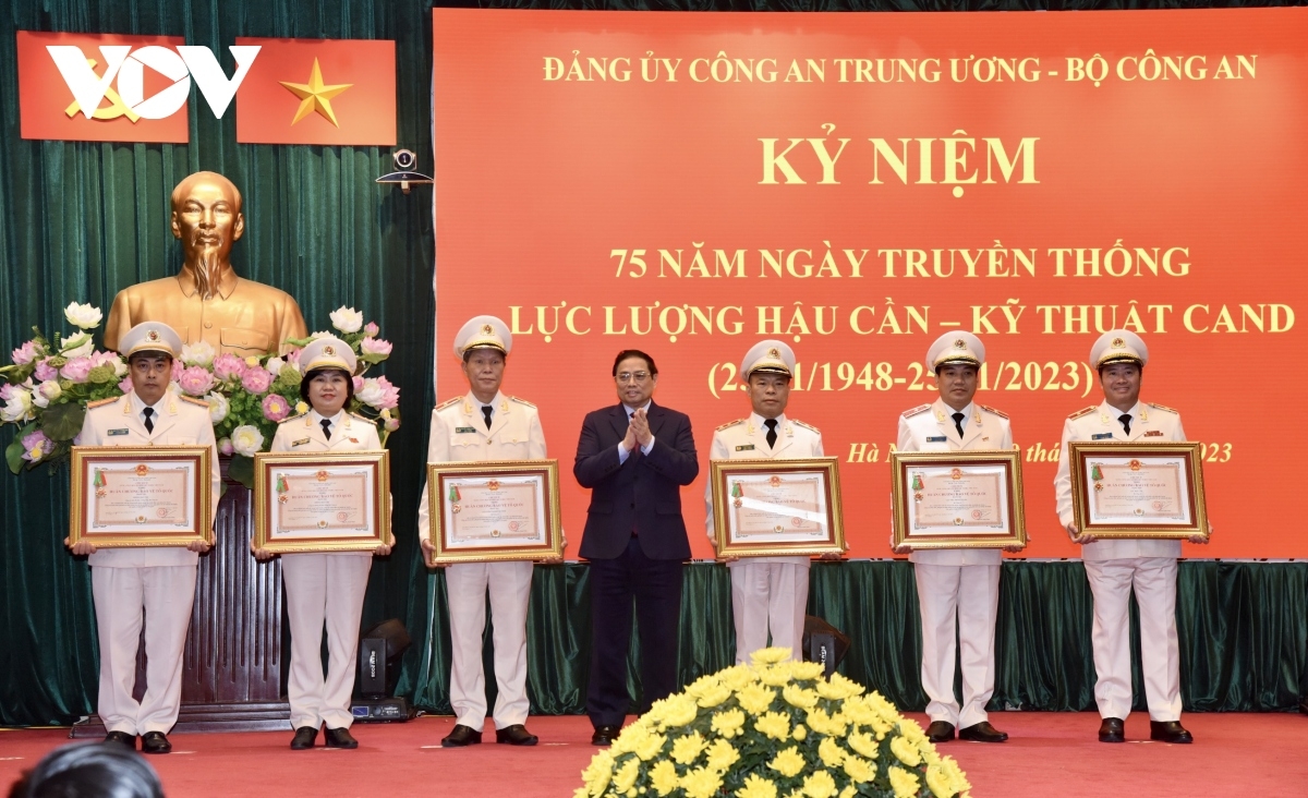 Tại buổi lễ, thay mặt Lãnh đạo Đảng, Nhà nước, Thủ tướng Phạm Minh Chính trao Huân chương Bảo vệ Tổ quốc hạng Nhì và hạng Ba, Bằng khen của Thủ tướng Chính phủ tặng các tập thể, cá nhân; Đại tướng Tô Lâm trao Bằng khen của Bộ trưởng Công an cho một số cá nhân thuộc lực lượng Hậu cần - Kỹ thuật CAND./.