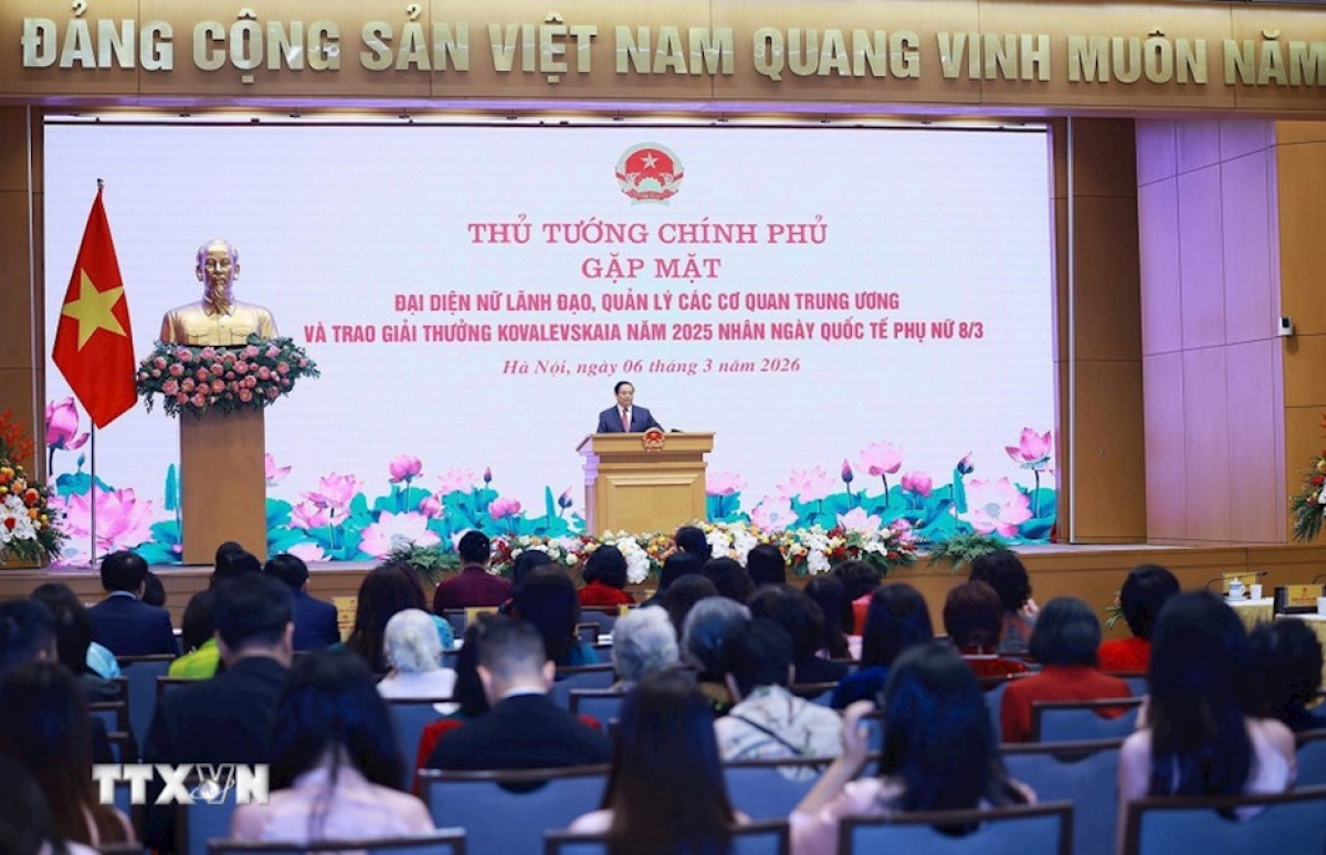 Nhân kỷ niệm 116 năm ngày Quốc tế phụ nữ 8-3, kỷ niệm 1986 năm Khởi nghĩa Hai Bà Trưng, sáng ngày 6/3, tại Trụ sở Chính phủ, Thủ tướng Chính phủ Phạm Minh Chính gặp mặt nữ lãnh đạo, quản lý các cơ quan Trung ương và trao Giải thưởng Kovalevskaia năm 2025
