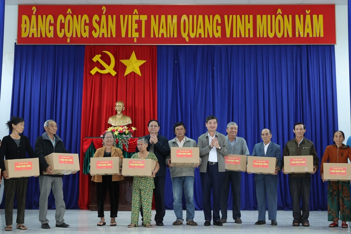 Sáng cùng ngày, Thủ tướng cùng đoàn công tác của Chính phủ đã khảo sát một số công trình dự án trọng điểm của tỉnh Phú Yên và đến động viên chia sẻ với công nhân và người lao động trong chương trình “Tết Sum vầy - Xuân gắn kết” năm 2023 do Tổng Liên đoàn Lao động Việt Nam, Tỉnh ủy Phú Yên và Ủy ban Trung ương Mặt trận Tổ quốc Việt Nam tổ chức. Tại chương trình, Thủ tướng Chính phủ và lãnh đạo Tổng Liên đoàn Lao động Việt Nam, tỉnh Phú Yên và Ủy ban Trung ương MTTQ Việt Nam đã trao 220 phần quà Tết cho đoàn viên, công nhân, người lao động xuất sắc và có hoàn cảnh khó khăn, với tổng trị giá khoảng 288 triệu đồng./.