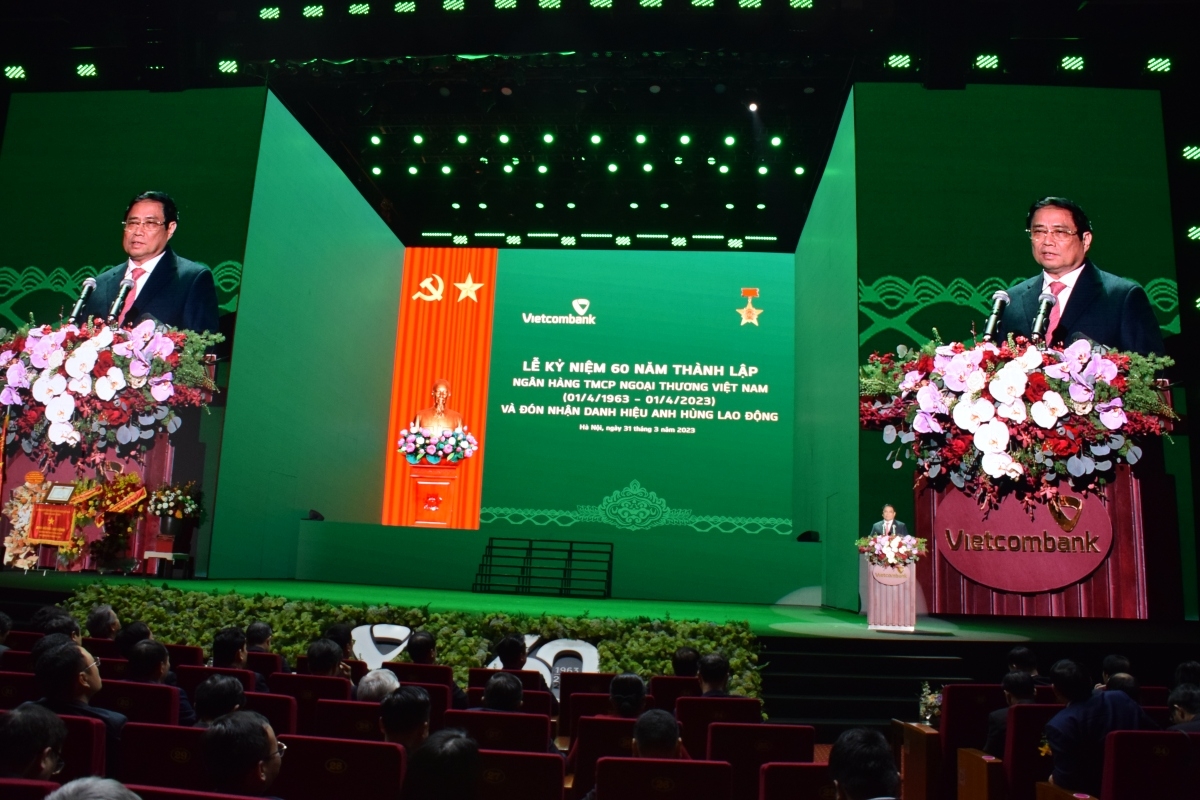Thủ tướng Phạm Minh Chính dự lễ kỷ niệm 60 năm thành lập Vietcombank và đón nhận danh hiệu Anh hùng Lao động