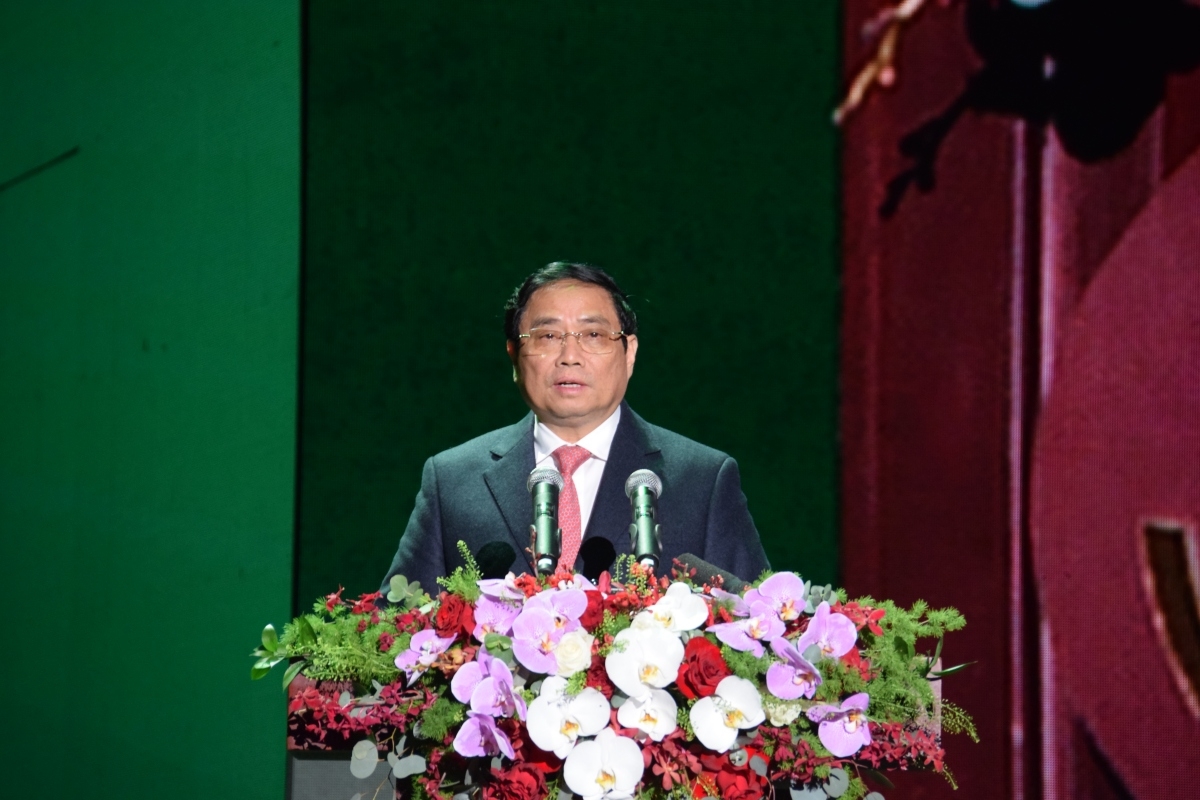 Phát biểu tại buổi lễ, Thủ tướng Phạm Minh Chính thay mặt Lãnh đạo Đảng, Nhà nước ghi nhận và nhiệt liệt biểu dương sự nỗ lực, quyết tâm cao và những thành tích xuất sắc mà các thế hệ lãnh đạo, cán bộ, nhân viên, người lao động Vietcombank đã đạt được, đóng góp quan trọng vào thành tựu chung của ngành Ngân hàng và cả nước. Thủ tướng đánh giá cao Vietcombank đã chủ động, tích cực tham gia hỗ trợ, xử lý các tổ chức tín dụng yếu kém, góp phần ổn định tình hình, giữ vững an ninh tiền tệ, tín dụng, ngân hàng, củng cố niềm tin của Nhân dân. Vietcombank cũng là ngân hàng tiên phong trong thực hiện chủ trương cơ cấu lại các khoản vay, miễn, giảm lãi, phí hỗ trợ khách hàng bị tác động của đại dịch Covid-19; chú trọng thực hiện các chính sách an sinh xã hội, trong đó từ năm 2012 đến nay đã dành hơn 3.000 tỷ đồng hỗ trợ người dân hoàn cảnh khó khăn, vùng sâu, vùng xa, vùng biên giới, hải đảo; đồng thời thúc đẩy tín dụng xanh, hướng tới một ngân hàng xanh, phát triển bền vững vì cộng đồng.