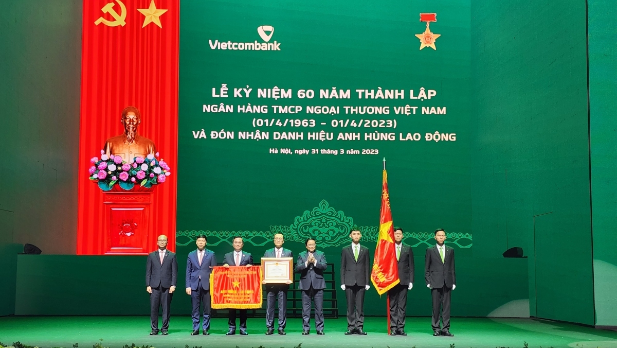 Sáng ngày 31/3, tại Hà Nội, Thủ tướng Chính phủ Phạm Minh Chính dự lễ kỷ niệm 60 năm thành lập Ngân hàng TMCP Ngoại thương Việt Nam (Vietcombank) và đón nhận danh hiệu Anh hùng Lao động.