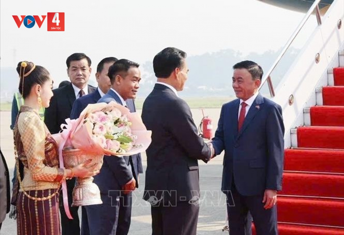 Thường trực Ban Bí thư Trần Cẩm Tú đến Viêng Chăn, bắt đầu thăm chính thức Lào