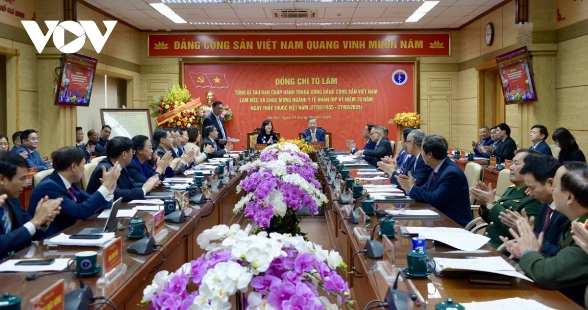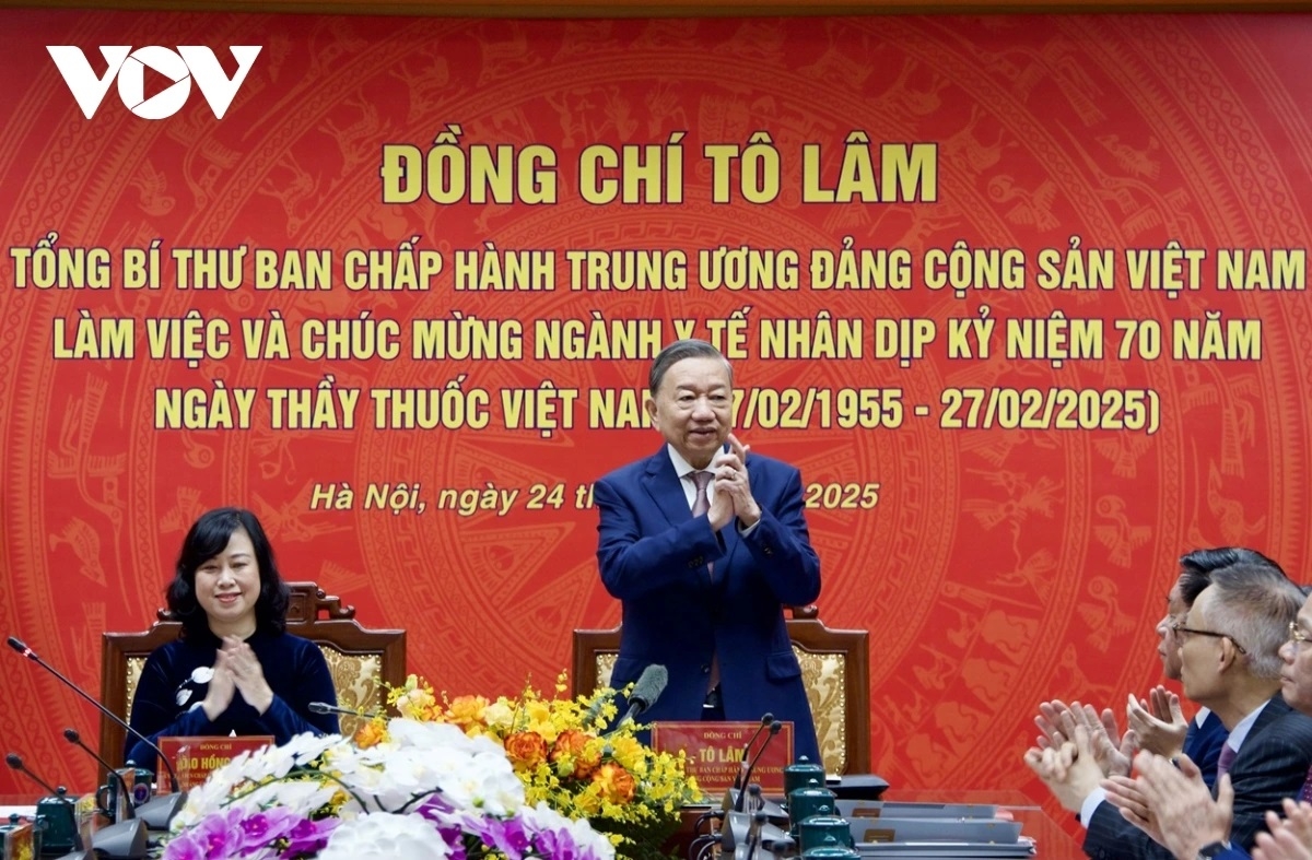 Sáng 24/2 tại Hà Nội, Tổng Bí thư Tô Lâm tới thăm và chủ trì buổi làm việc với Bộ Y tế về Kết quả thực hiện công tác y tế trong thời gian qua, phương hướng, nhiệm vụ thời gian tới và chúc mừng Ngành Y tế nhân dịp kỉ niệm 70 năm Ngày Thầy thuốc Việt Nam.