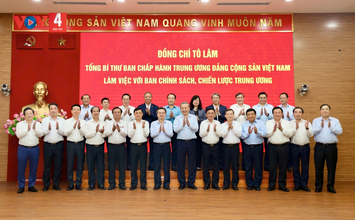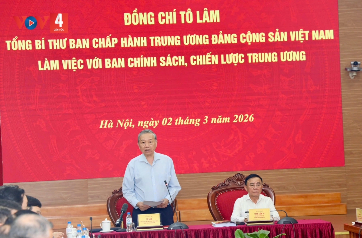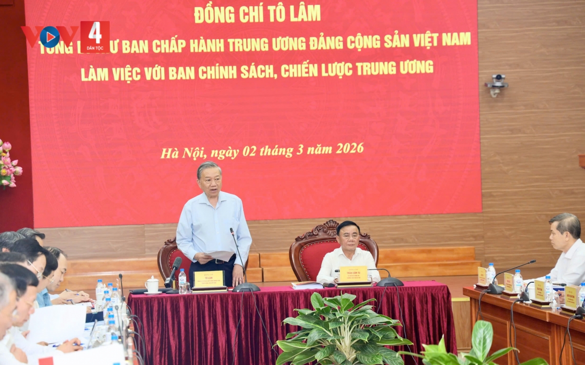 Chiều ngày 2/3, tại Hà Nội, Tổng Bí thư Tô Lâm tới thăm và chủ trì buổi làm việc với Ban Chính sách và Chiến lược Trung ương về việc xây dựng Nghị quyết giải pháp chiến lược thúc đẩy kinh tế tăng trưởng 2 con số gắn với xác lập mô hình tăng trưởng mới.
