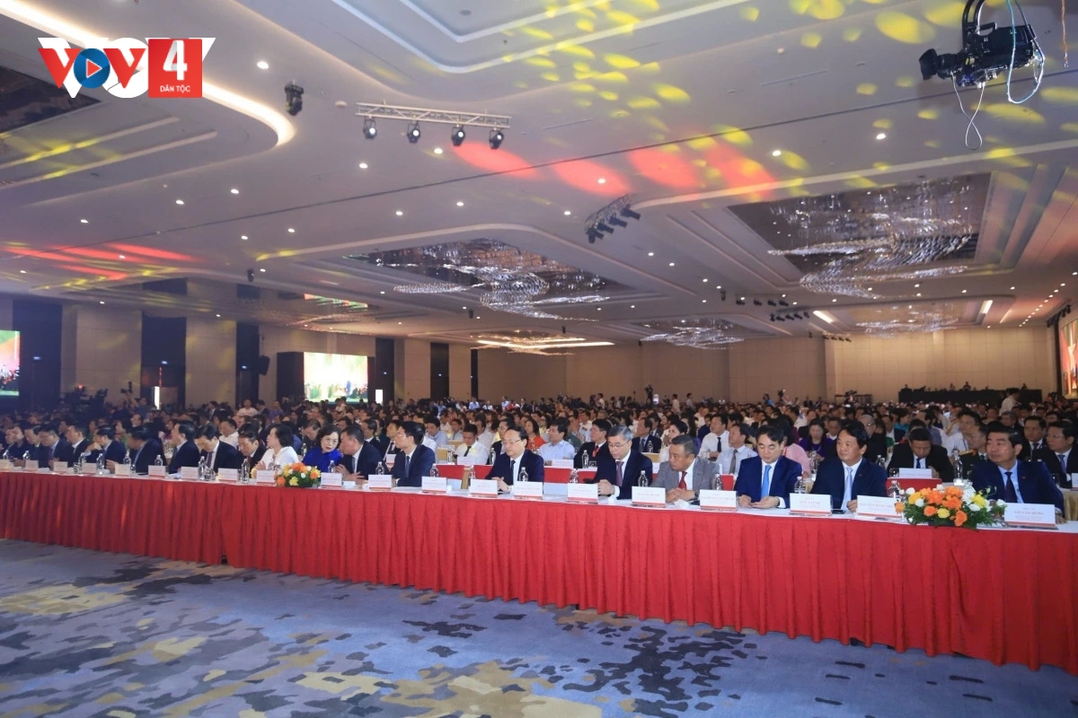 Pâh Triển lãm vêy: Tổng Bí thư Tô Lâm; Thủ tướng Chính phủ Phạm Minh Chính; Chủ tịch Quốc hội Trần Thanh Mẫn; zâp bh’cộ bha lâng âng Đảng, Nhà nước lâng lâh 3.000 đại biểu tươc tơợ 34 tỉnh, thành phố, zâp doanh nghiệp coh prang k’tiêc k’ruung lâng zâp apêê ta mooi đăh k’tiêc k’ruung lơơng.