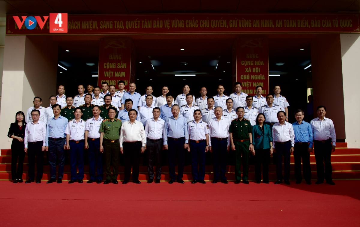 Tiếp đó, Tổng Bí thư đã tới thăm và làm việc với Vùng 5 Hải quân đóng quân tại Đặc khu Phú Quốc, tỉnh An Giang./.