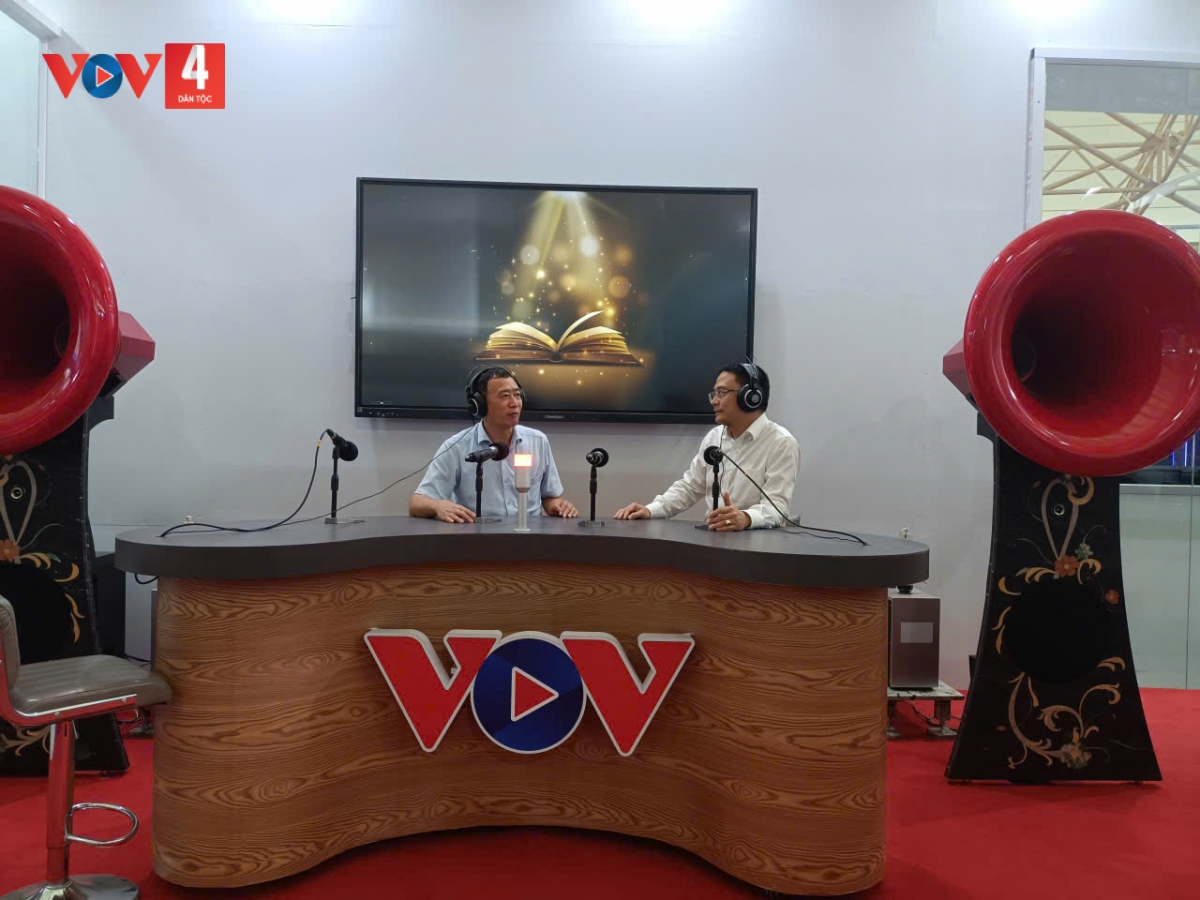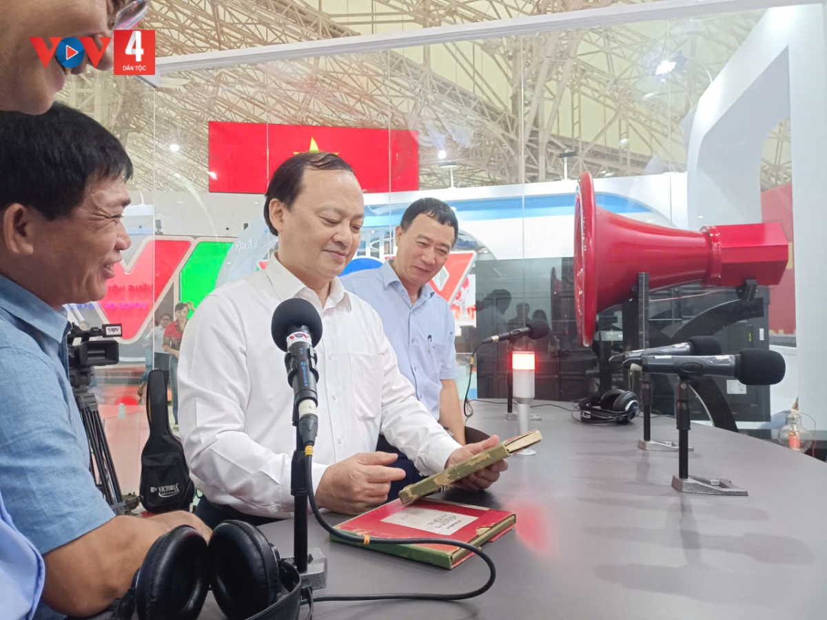 Tổng Giám đốc Đỗ Tiến Sỹ thăm, kiểm tra gian trưng bày của VOV tại Triển lãm thành tựu Đất nước 80 năm