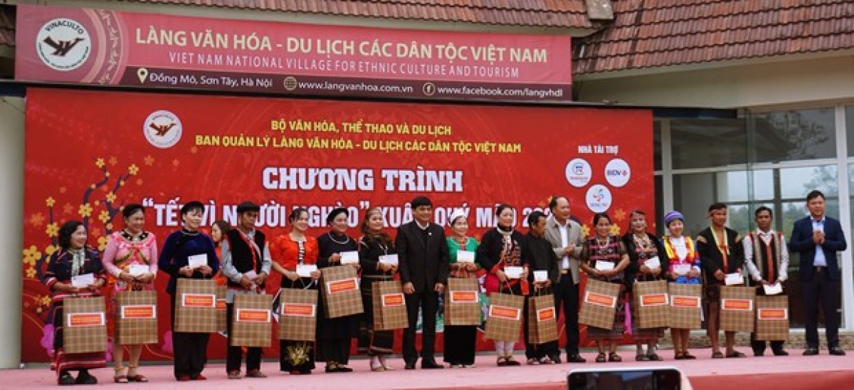 Năm nay, Chương trình trao khoảng 300 phần quà tặng đối tượng chính sách, các hộ khó khăn và đồng bào đang sinh hoạt tại Làng Văn hóa - Du lịch các dân tộc Việt Nam. Dịp này, Ban Tổ chức cũng trao 14 căn nhà tình nghĩa tặng các gia đình chính sách và hộ nghèo, hộ dân tộc thiểu số khó khăn ở tỉnh Kon Tum.