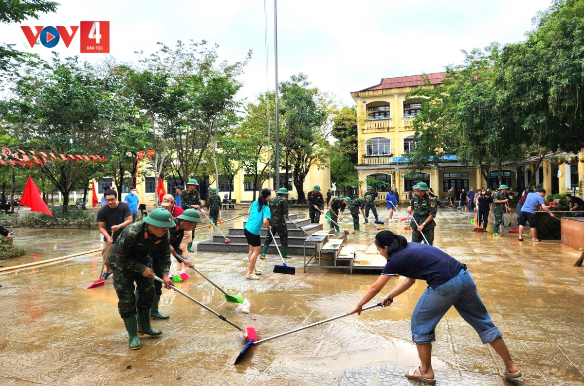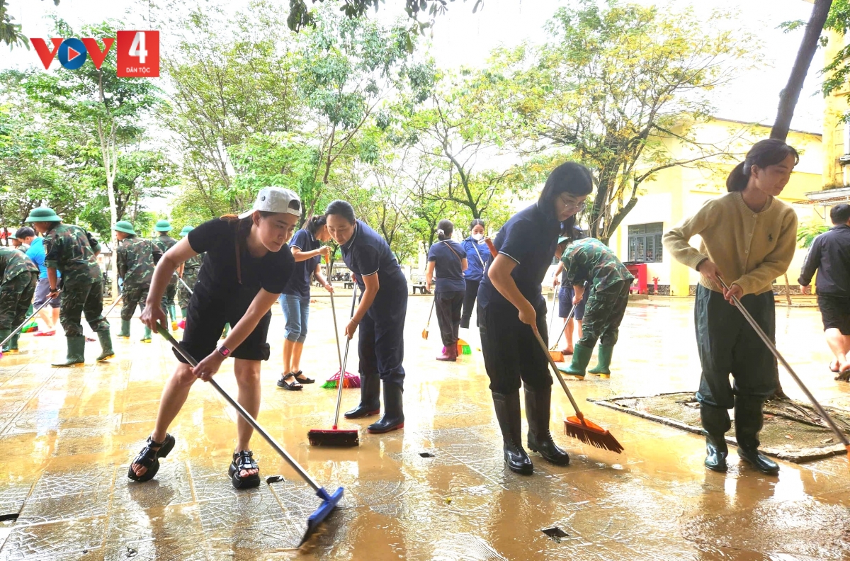 Ngành Giáo dục địa phương huy động giáo viên, phụ huynh cùng các lực lượng Công an, Quân đội tổng dọn vệ sinh, khử khuẩn, sắp xếp lại trang thiết bị dạy học. Trung tá Tạ Văn Tú, Chính uỷ viên Trung đoàn 6, Bộ Chỉ huy Quân sự thành phố Huế cho biết, đến nay đã hỗ trợ 20 trường học dọn vệ sinh sau lũ. Trong đợt lũ lớn vừa qua, hàng trăm trường học trên địa bàn thành phố Huế bị ngập lụt, thiệt hại nặng. Qua thống kê sơ bộ, hàng nghìn bộ sách giáo khoa, thiết bị dạy học bị hư hỏng, 3 học sinh tử vong do đuối nước trong và sau lũ.
