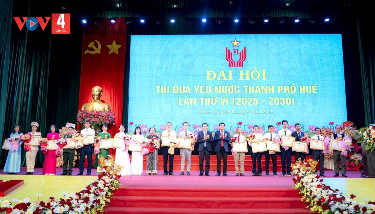 Sáng 26/9, Đại hội Thi đua yêu nước TP Huế lần thứ VI (giai đoạn 2025–2030) đã diễn ra với sự tham dự của gần 240 đại biểu điển hình tiên tiến, đại diện cho các phong trào thi đua yêu nước trên toàn thành phố