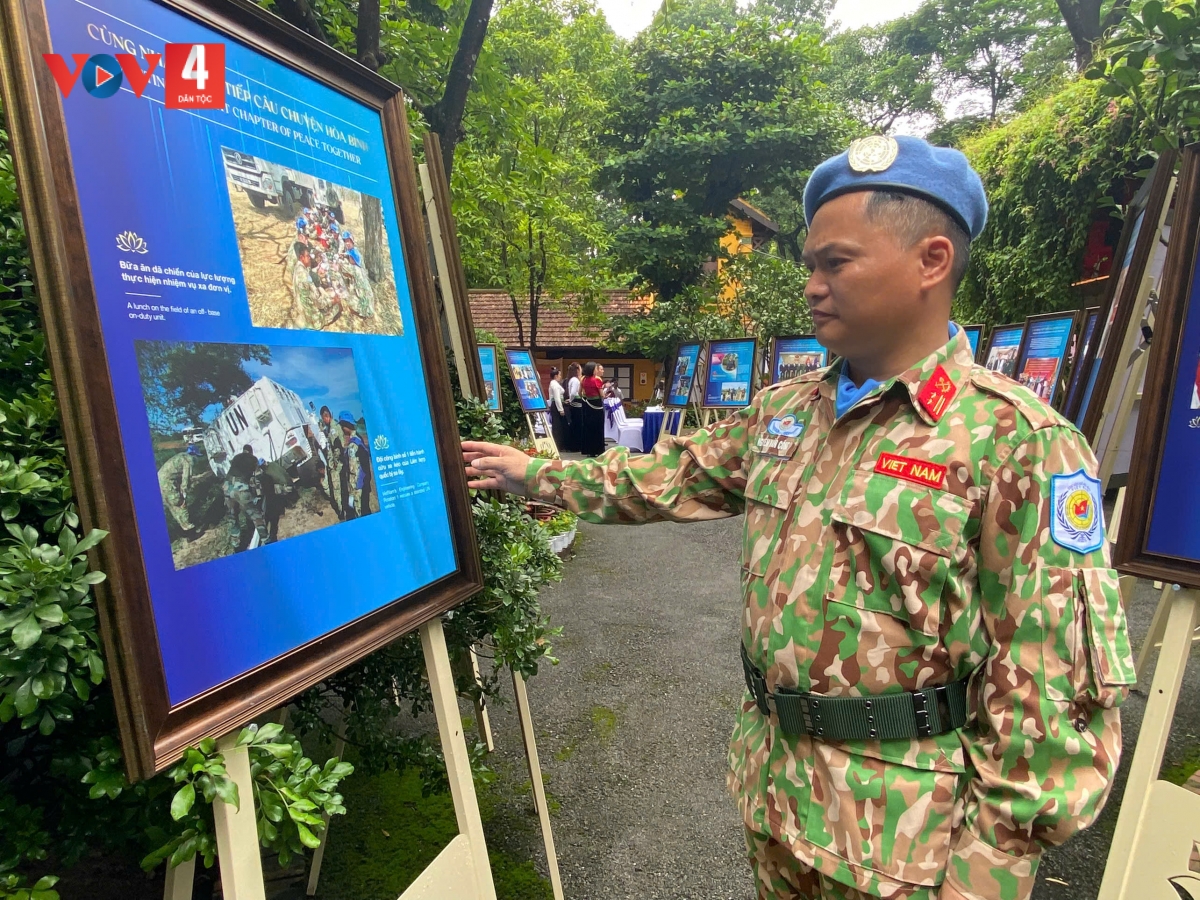 Triển lãm "Viết tiếp câu chuyện hòa bình" truyền tải những "thông điệp vì hòa bình" của Chủ tịch Hồ Chí Minh qua những bức thư, lời nói, tuyên ngôn, bức điện gửi các tổ chức, nguyên thủ các nước, nhân dân thế giới và Việt Nam với mong muốn "Hữu nghị và hòa bình giữa nhân dân toàn thế giới". Thông qua những hình ảnh chân thực, triển lãm giới thiệu các chiến sĩ quân đội và công an Việt Nam - những "chiến sĩ mũ nồi xanh" mang sứ mệnh thiêng liêng gìn giữ hòa bình tại các phái bộ của Liên hợp quốc và Cục Gìn giữ hòa bình Việt Nam.