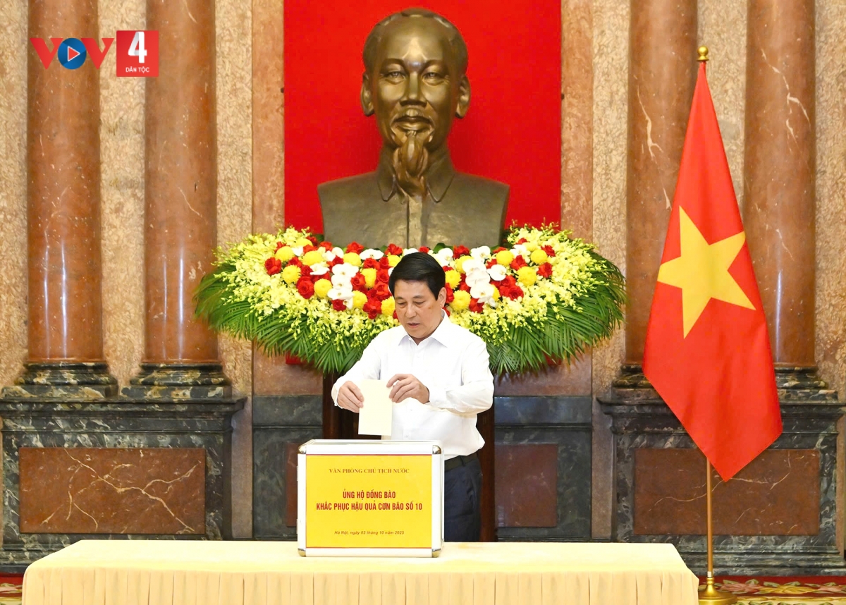 Với tinh thần “tương thân, tương ái”, “lá lành đùm lá rách”, Chủ tịch nước Lương Cường, lãnh đạo Văn phòng Chủ tịch nước và toàn thể cán bộ, công chức, người lao động cơ quan Văn phòng Chủ tịch nước đã ủng hộ tối thiểu mỗi người một ngày lương, góp phần chung tay cùng cả nước hỗ trợ đồng bào các địa phương đang chịu ảnh hưởng nặng nề của bão lũ sớm khắc phục thiệt hại, ổn định cuộc sống.