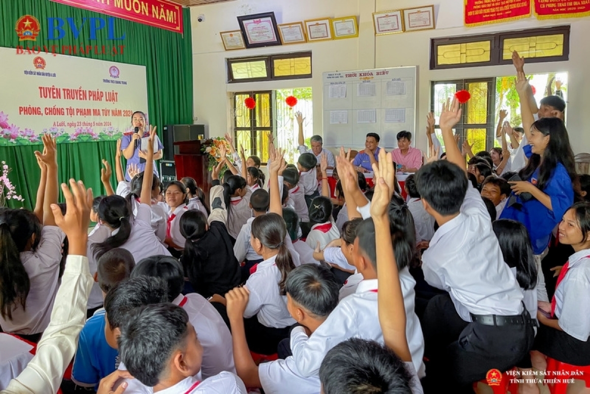 VKSND huyện A Lưới, tỉnh Thừa Thiên Huế vừa phối hợp với Trường THCS Quang Trung (huyện A Lưới) tổ chức thành công buổi tuyên truyền, phổ biến kiến thức pháp luật về phòng chống ma túy trong học đường cho các em học sinh trường THCS Quang Trung