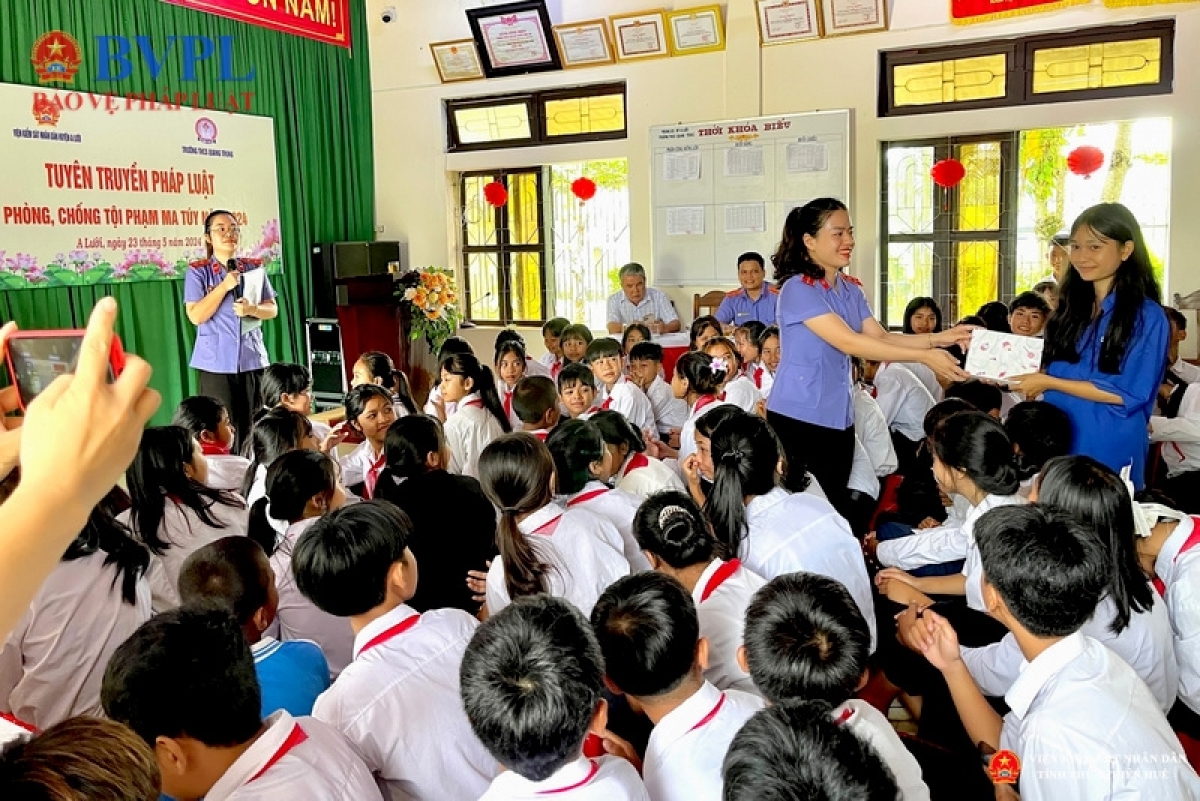 Tại buổi tuyên truyền, thông qua hình thức tuyên truyền miệng, kết hợp ứng dụng công nghệ thông tin trong trình chiếu phim khoa giáo về phòng chống ma túy, cán bộ VKSND huyện A Lưới đã giúp học sinh hiểu khái niệm ma tuý, phân biệt các loại ma tuý thường gặp và những tác hại khôn lường của ma túy đối với cá nhân, gia đình và xã hội. Đồng thời, chỉ ra những thủ đoạn tinh vi của tội phạm tàng trữ, buôn bán, vận chuyển ma túy, đặc biệt là sự trá hình của ma túy trong đồ ăn thức uống, trong các sợi thuốc lá, thuốc lào, trong tinh dầu của thuốc lá điện tử mà lứa tuổi học sinh thường xuyên sử dụng. Qua đó, giúp các em nâng cao kiến thức, hiểu biết về tác hại của ma túy đối với bản thân, gia đình và xã hội, tạo chuyển biến về nhận thức, luôn “nói không với ma túy” và mạnh dạn đấu tranh phòng, chống tội phạm về ma túy; kiên quyết không để ma túy có cơ hội xâm nhập vào trường học, góp phần cùng nhà trường xây dựng môi trường học đường an toàn.