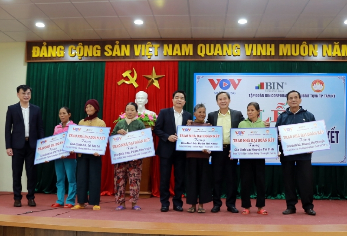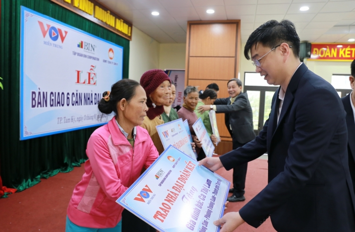 Tại buổi lễ, lãnh đạo Cơ quan Thường trú khu vực miền Trung - Đài Tiếng nói Việt Nam; Tập đoàn BIN Corporation cùng lãnh đạo tỉnh Quảng Nam đã trao bảng tượng trưng, bàn giao 6 ngôi nhà Đại đoàn kết cho 6 hộ gia đình. Đây là những gia đình hoàn cảnh khó khăn, sống trong những căn nhà xuống cấp trầm trọng. Giữa tháng 9 năm 2022, thông qua sự kêu gọi của VOV Miền Trung, Tập đoàn BIN Corporation đã tài trợ 360 triệu đồng để xây dựng 6 căn nhà Đại đoàn kết tặng hộ nghèo hoàn cảnh khó khăn trên địa bàn thành phố Tam Kỳ, tỉnh Quảng Nam. Đến nay 6 căn nhà đã hoàn thành và đưa vào sử dụng, giúp 6 hộ gia đình khó khăn có điều kiện ổn định cuộc sống trong ngôi nhà mới trước thềm Tết Nguyên Đán Quý Mão 2023.