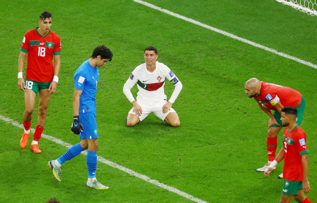 Vào trận, sai lầm của thủ môn Diogo Costa đã giúp cho Youssef En-Nesyri đánh đầu mở tỉ số ở phút 42. Trong khoảng thời gian còn lại, Bồ Đào Nha tấn công dồn dập, nhưng trước hàng phòng ngự chơi tốt của Ma rốc, cầu thủ Bồ Đào Nha lâm vào bế tắc. Ronaldo được vào sân, nhưng cũng không thể hiện được nhiều.