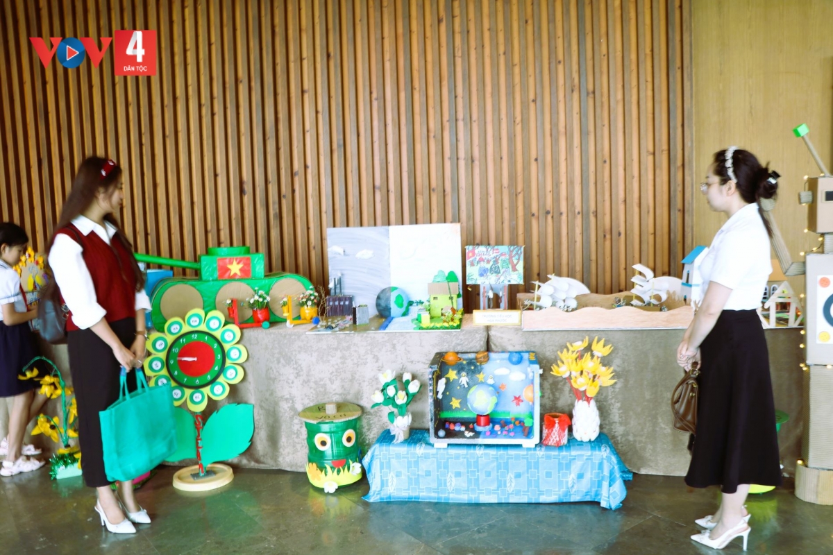 “Nhà trường, Chi đoàn, Liên đội giúp các em vào giờ ra chơi thu gom phân loại rác thải nhựa tại nhà đem lên trường phân loại. Ngoài việc học trên lớp, nhà trường tổ chức hoạt động này nhằm giúp học sinh sáng tạo những mô hình STEM”.