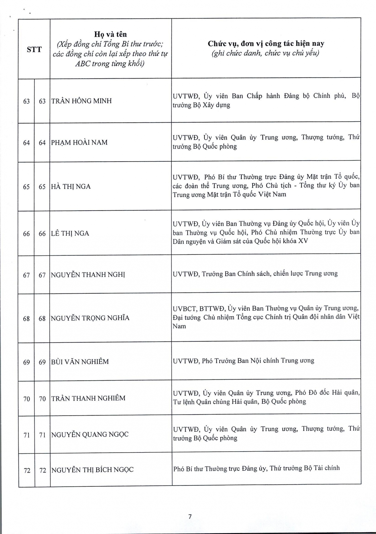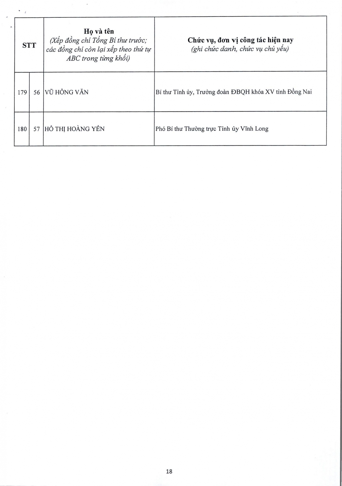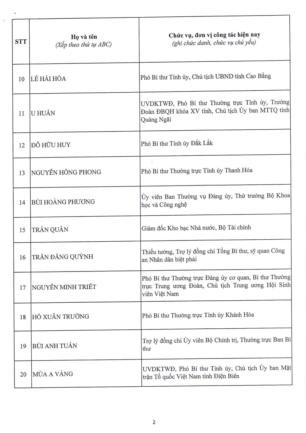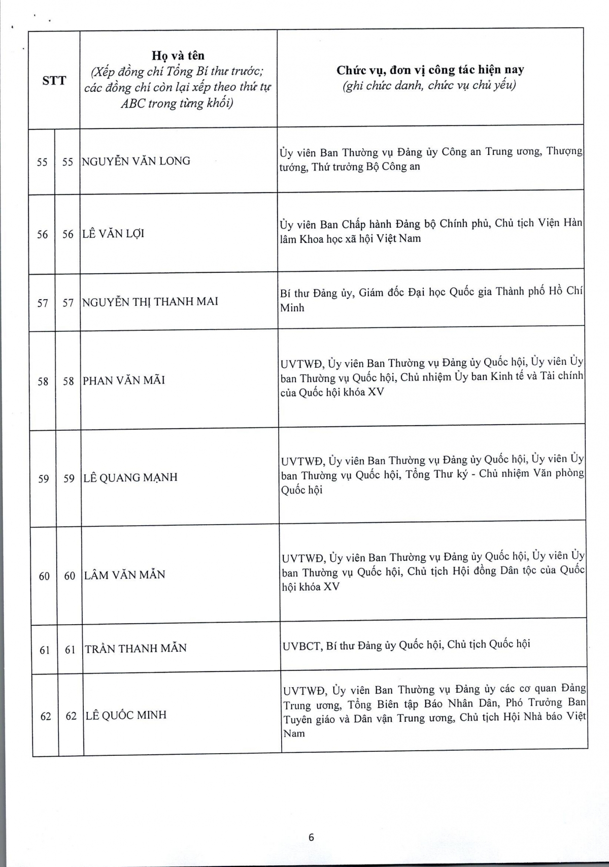 VOV.VN xin cập nhật danh sách Ban Chấp hành Trung ương khóa XIV, gồm 200 ủy viên, trong đó có 180 ủy viên chính thức và 20 ủy viên dự khuyết.