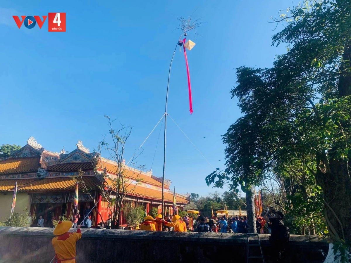 Ở kinh đô Huế xưa, không khí đón Tết trong Hoàng cung triều Nguyễn mở đầu bằng Lễ dựng nêu vào ngày 23 tháng Chạp. Đây là dấu mốc thiêng liêng báo hiệu khép lại một năm làm việc, để con người bước vào những ngày nghỉ ngơi, vui xuân. Cây nêu được dựng trước dinh phủ, đình chùa, trước điện Thái Hòa và các miếu trong Đại Nội. Đó là cây tre đực, cao, to, khỏe, trên ngọn treo ấn tín, bút lông, đoản kiếm – những biểu trưng cho đạo lý, học vấn và uy quyền.