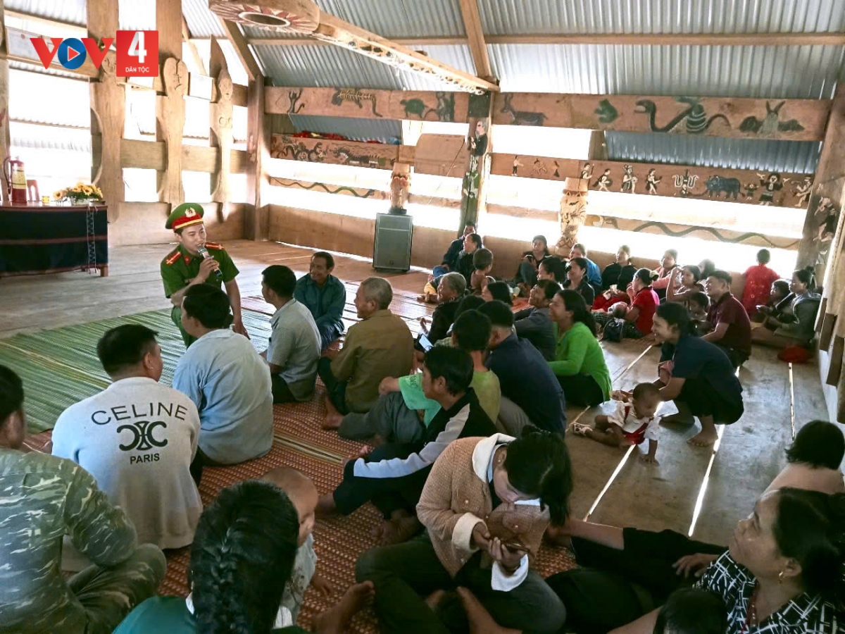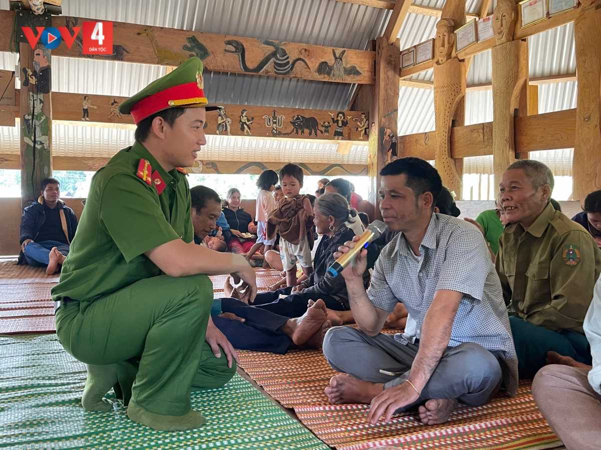 Thượng úy Đặng Văn Tân – Tổ trưởng Cảnh sát zr’lụ, Công an chr’val Hùng Sơn đoọng năl, năc vel đong đhr’đấc đhr’luônh, c’lâng p’rang lướt chô k’đhap zr’năh, đác đoong ch’ngai bhrợ đhr’năng t’pặt rooh cat lưm k’đhap pa bhlầng.