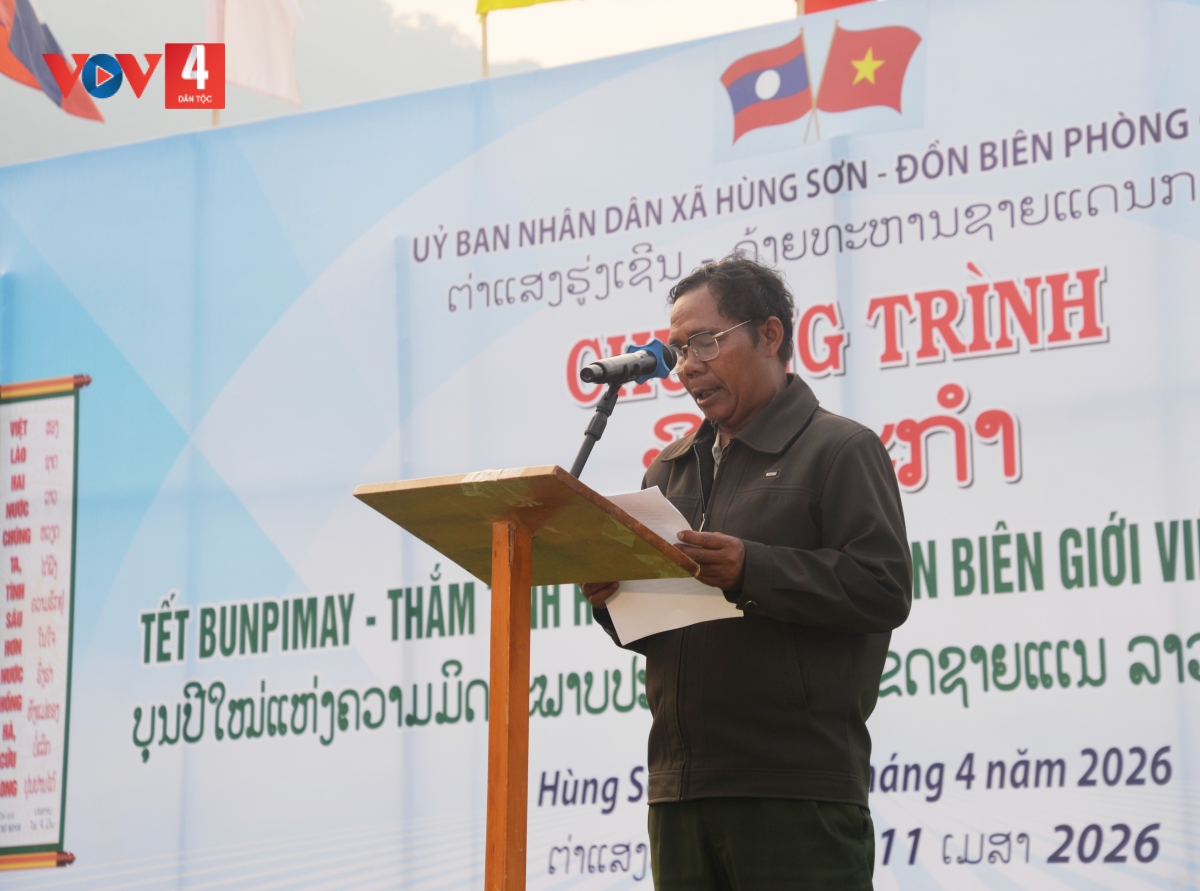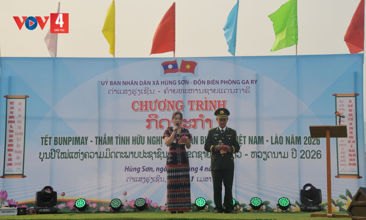 Từ sáng sớm, tại thôn Atu 1 rộn ràng tiếng nói cười của bà con hai bên khu vực biên giới Việt – Lào. Người dân các thôn biên giới của xã Hùng Sơn cùng cán bộ, chiến sĩ Bộ Đội biên phòng Ga Ry đứng đón bà con từ các bản Abưl, Pa Nool, Ta Long, Tà Vàng, Ba Bình thuộc huyện Kà Lừm, tỉnh Sê Kông, nước bạn Lào về thôn Atu 1 chung vui Tết Bunpimay, Tết truyền thống của nước bạn Lào.