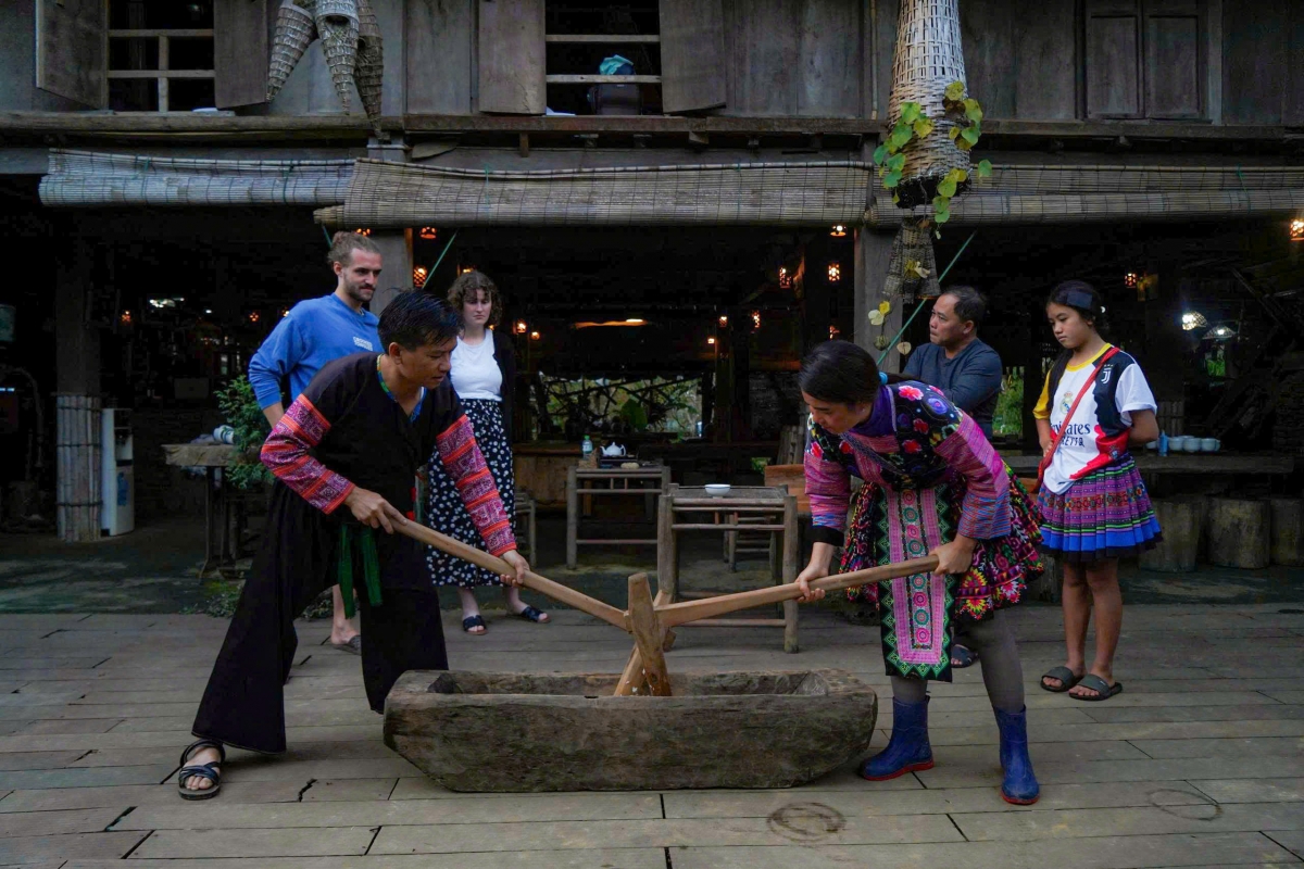 Lùng muẩn, cờ hên dố tẩu, kéh ziều mảng anhz chuổng zào liều vuồn uz, vuồn ngệ lái tzính múa tỏi miền màn ziêm láng kếu y mhuôngz tziêuz homstay A Chu biểu diễn, kếu coz bài lả còn ziều, plômz phàn tị, boz tàn. A Trang, làn miền plôm phàn tị ziêm đội vuồn nghệ láng pun hiuz: Zia laz xì guyền hnâyz vuổi tuz plômz phàn tị, biểu diễn vuồn nghệ mayz tan mài thim nhuồn xiêu, bez anhz tzùn pn khzé ziều mảng hiuz duấn phính pẹ mìu miền nhây vuồn uz.