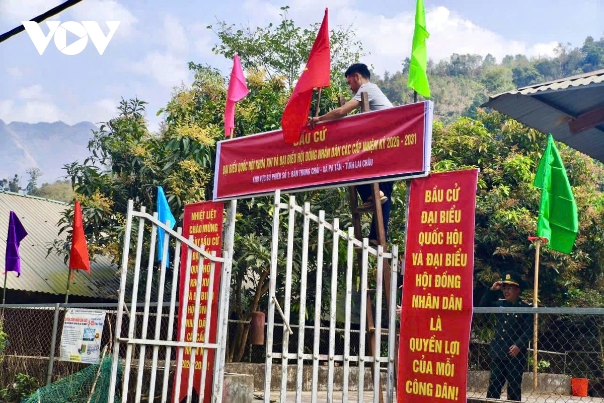 Nom đièng pieoz ziêm Trung Chải 2 láng diéo diéo miền màn, tuz cán bộ, chiến sĩ biên phòng búa pun miền màn hiuz cử tri nhây quyền kếu xỉ tào duốn chaoz bỏ phiếu kếu khoaiz phiếu bez hangz hái.