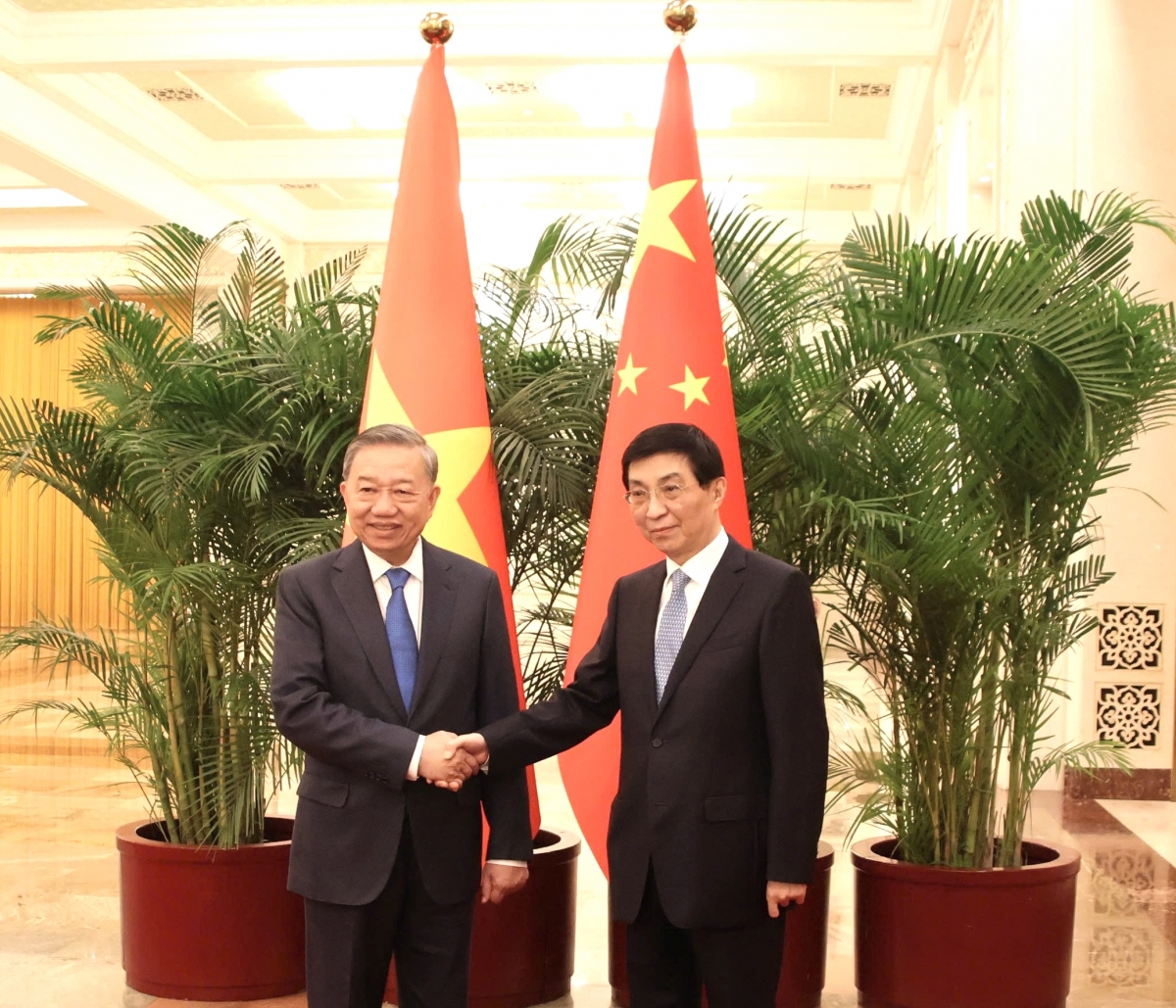 Khua gĭt gai Đảng, Khua lăn čar Tô Lâm mñă ktang Đảng leh anăn knŭk kna Việt Nam dlăng yuôm bhăn bruă bi kjăp leh anăn mđĭ kyar klei mjĕ giăm hŏng Đảng leh anăn knŭk kna China, dlăng anei jing hdră êlan tal êlâo hlăm bruă hŏng tač êngao, Việt Nam tui tiŏ nanao hŏng hdră êlan sa China, sa ai hŏng China đĭ kyar ktang, bi lar bruă klam yuôm bhăn hŏng klei êđăp ênang, bi mguôp leh anăn đĭ kyar hlăm alŭ wăl leh anăn tar rŏng lăn. Sa ai hŏng klei hmăng hmưi leh anăn klei čiăng bi mguôp mơ̆ng Khua gĭt gai Đảng, Khua lăn čar Tô Lâm, Khua Bruă Kƀĭn Ala China Vương Hộ Ninh bi êdah China hmăng hmưi leh anăn mprăp mtrŭt mđĭ klei mjĕ êrô, klei bi trông dŭm gưl bruă plah wah dua ala čar, mtrŭt mđĭ klei bi mguôp hlăm djăp mta bruă, bi lar bruă klam gĭt gai mơ̆ng Dhar bruă bi mguôp dua tĭng China – Việt Nam.