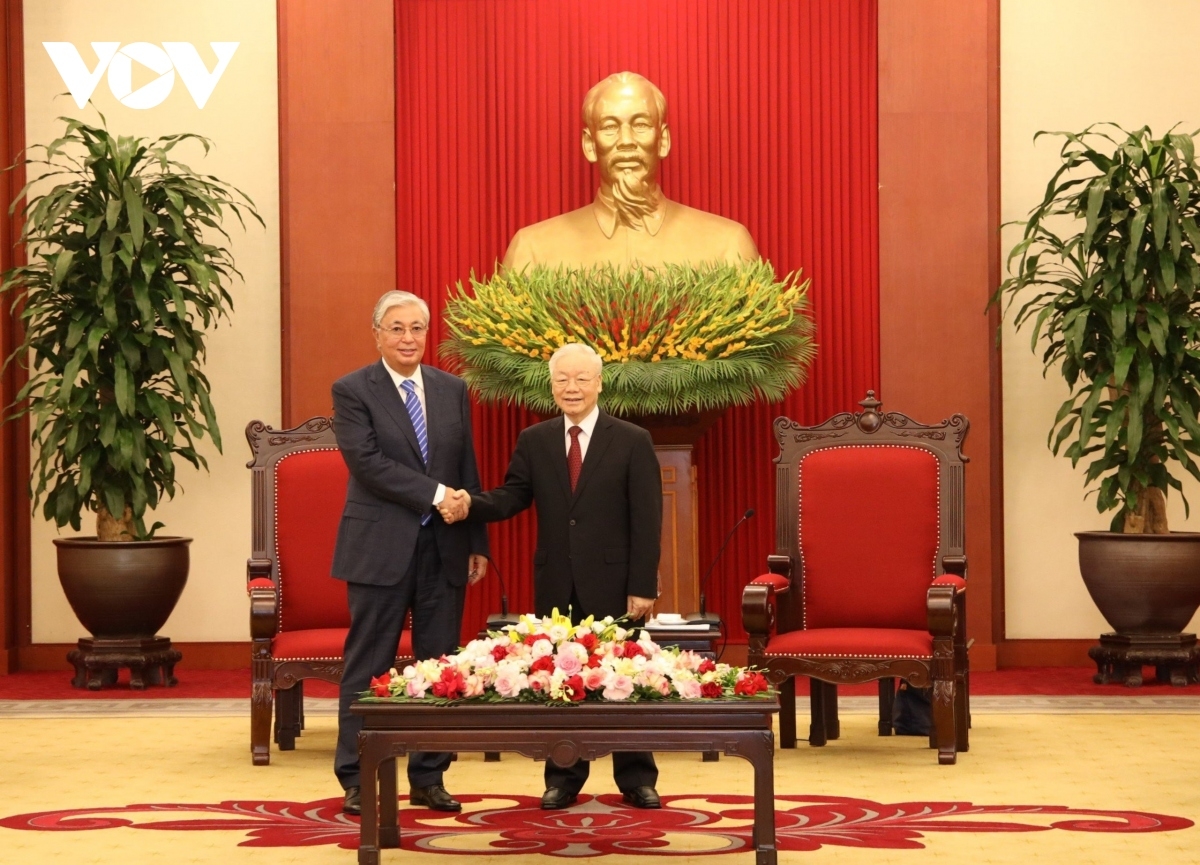 Khua gĭt gai Đảng Nguyễn Phú Trọng mñă klă, Việt Nam dlăng yuôm bhăn bruă mđĭ kyar leh anăn bi kjăp klei mjĕ giăm hŏng dŭm ala čar mah jiăng, hlăm anăn mâo klei mjĕ giăm hŏng Kazakhstan. Khua gĭt gai Đảng Nguyễn Phú Trọng bi trông hŏng Khua mil čhil Kassym-Jomart Tokayev kơ dŭm hdră tă, bruă klam prŏng kñăm mtrŭt mđĭ klei mjĕ giăm plah wah 2 lăn čar đĭ ti hnơ̆ng mrâo, mđĭ klei bi mguôp kluôm dhuôm kyua boh tŭ dưn mnuih ƀuôn sang 2 lăn čar, đru mguôp kơ klei êđăp ênang, hơĭt kjăp leh anăn mdrŏng sah mơ̆ng alŭ wăl leh anăn tar rŏng lăn.