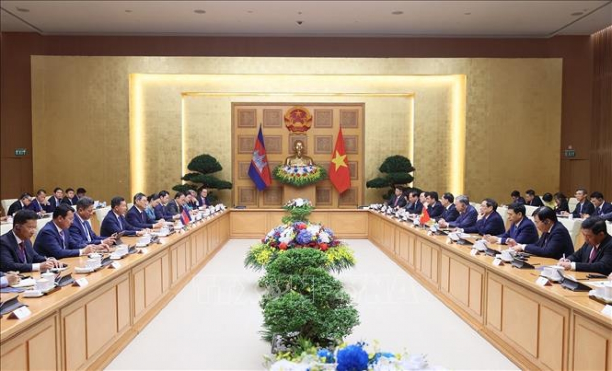 VOV4.Êđê- Aguah mbruê 11/12, ti Hà Nội, Khua knŭk kna Phạm Minh Chính gĭt gai knăm drông leh anăn blŭ hrăm hŏng Khua knŭk kna Campuchia Hun Manet klă klơ̆ng hriê čuă 11-12/12 hluê si klei jak iêo mơ̆ng Khua knŭk kna Phạm Minh Chính