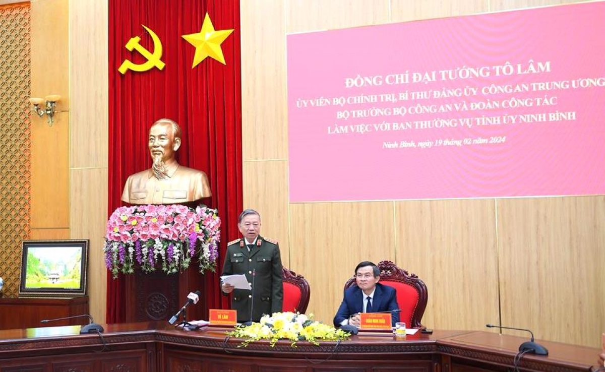 Blŭ hrăm hlăm mmông mă bruă, Khua phŭn bruă Tô Lâm hơêč hmưi, bi mni kơ boh tŭ bruă Đảng, bruă sang čư̆ êa leh anăn mnuih ƀuôn sang čar Ninh Bình mâo leh hlăm wưng êgao. Khua phŭn bruă Tô Lâm mtă kơ čar lŏ dơ̆ng păn kjăp klei gĭt gai mơ̆ng bruă Đảng gưl dlông, Knŭk kna, bruă kƀĭn ala, boh nik pŏk ngă tŭ dưn Hdră mtrŭn 30 mơ̆ng Phŭn bruă kđi čar kơ klei mđĭ kyar bruă duh mkra- ala ƀuôn, rơ̆ng klei êđăp ênang krĭng dap mnai Krông Hồng truh thŭn 2030, hnơ̆ng trah dlăng truh thŭn 2045.