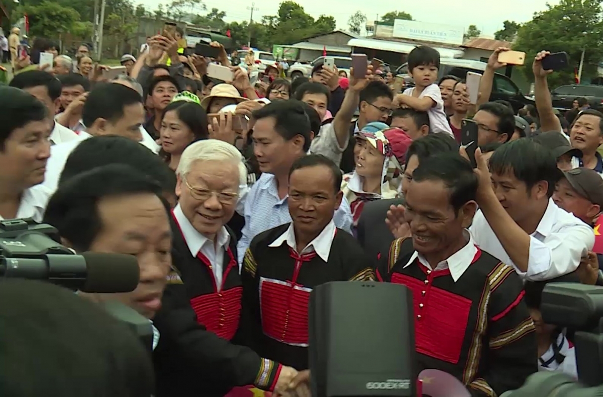 “Khua gĭt gai Đảng Nguyễn Phú Trọng dlăng nanao bruă bi hgŭm jih jang djuê ana jing klei yuôm bhăn, jing phŭn kơ klei ktang ala čar. Hlue ngă klei blŭ mơ̆ng Khua gĭt gai Đảng, Knơ̆ng bruă mặ trận čar kwar Việt Nam čar Dak Lak lŏ dơ̆ng ngă jăk bruă bi kƀĭn, bi hgŭm dŭm êpul mnuih ƀuôn sang, djuê ana, klei đăo, hrăm mbĭt kyua êpul êya, mkŏ mkra ƀuôn sang dhar kreh, jăk siam”./.