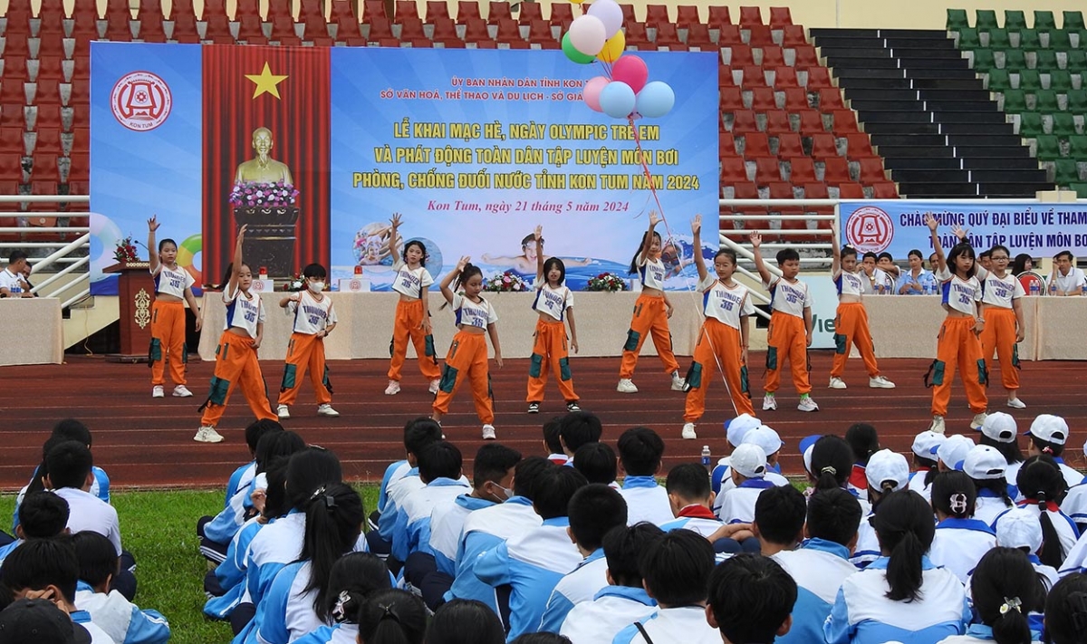 VOV4.Êđê- Aguah mbrue 21/5, Knơ̆ng bruă dharr kreh, mjuăt asei mlei hgŭm leh hŏng knơ̆ng bruă sang hră čar Kon Tum pŏk knăm bi hriăm luê hlăm yan mdei prŏng, hrue Olympic phung hđeh, lehanăn mtrŭt jih jang mnuih hriăm lue, mdrơ̆ng hŏng klei djiê mngăt hlăm êa, mâo leh êbeh 1.300 čô hđeh nao hriăm.