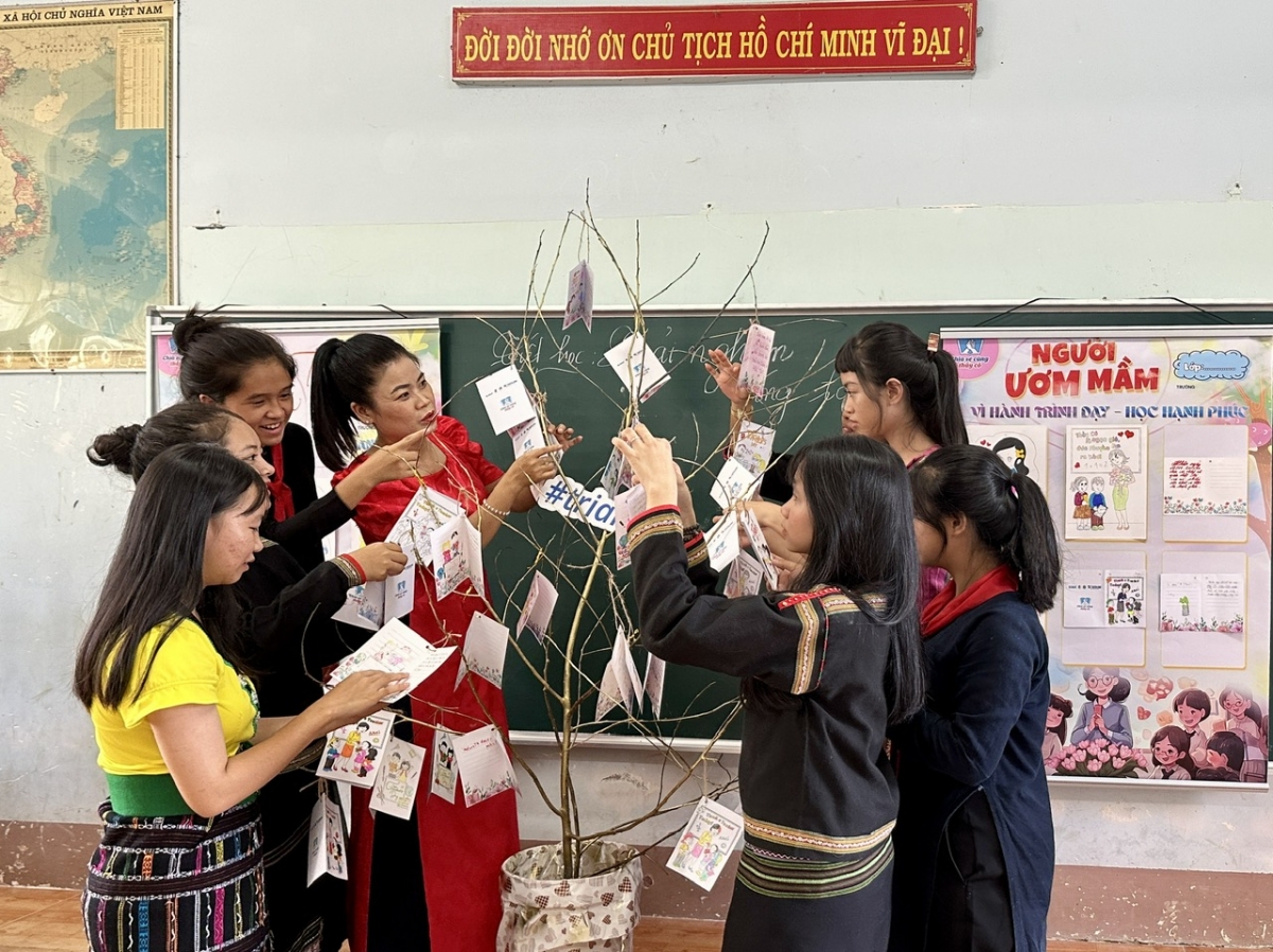 Hlue si Nguyễn Thị Thuỳ Diễm, Khua sang hră gưl 2 knŭk kna rông ba kdriêk Lăk, thŭn hriăm 2023-2024, kluôm sang hră mâo 152 čô hđeh hriăm. Hlue anăn, 96% jing hđeh sang hră mnuih djuê ƀiă hŏng 8 djuê ana. Lu jing phung hđeh hriê mơ̆ng dŭm să krĭng taih kbưi, krĭng mnuih djuê ƀiă ti kdriêk. Klei hdĭp mda gŏ sang phung hđeh adôk lu klei dleh dlan. Kyua anăn, grăp čô nai bi mklă, êngao kơ bruă pô snăn kriê dlăng hđeh sang hră lŏ jing bruă klam leh anăn klei khăp. Hlăm adŭ, phung nai jing phung nai nmtô kơ hđeh klei thâo. Kbiă mơ̆ng adŭ hriăm truh kơ wăl anôk dôk, phung nai msĕ si phung ama, phung amĭ kriê dlăng kơ phung anak pô mơ̆ng klei huă ƀơ̆ng truh kơ đih pĭt.