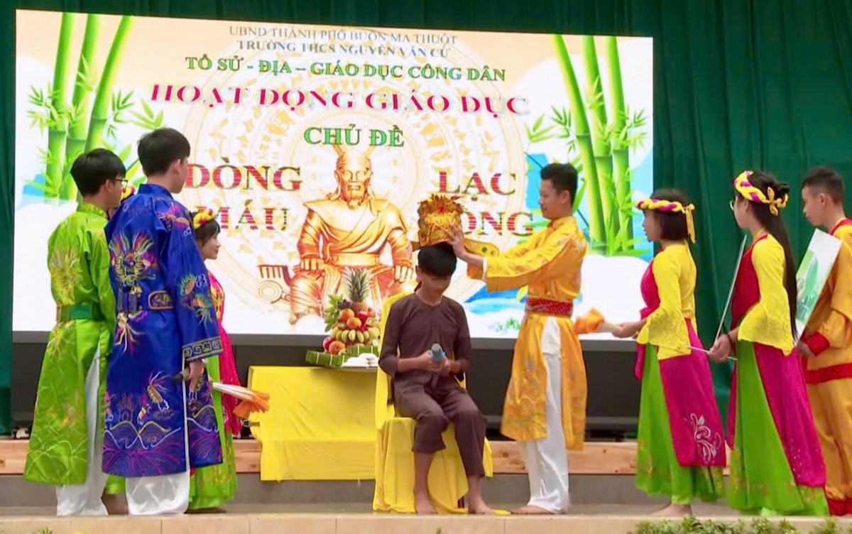 Bơh bồ nhai 3 nam lơgar he dê, pơgru mờ kơnòm bơsram Hìu bơsram kâp 2 Nguyễn Văn Cừ neh lơh ngan tàp ală jơnau đơs crih tamya nàng tus bal broă lơh bơdìh tŭ jơ bơsram tàm ơdŭ jat tơngai pơrjum. Mờ tơngume “Mhàm Lạc Hồng”, broă lơh bơdìh tŭ jơ bơsram tàm ơdŭ dơ̆ do wèt tus ngai duh kah bơtau Hùng (ngai 10 nhai 3 nam lơgar he dê). Pơgru Vũ Thị Thu Hằng, lam bồ mpồl môn Jơnau Kah yau- Địa lý- Bơto bơtê làng bol bơh hìu bơsram dê yal: Ờ mìng là dùl broă lơh pơrjum, bol hi kờñ kơnòm bơsram git uă bè jơnau gơtha bơh ngai duh kah bơtau dà lơgar dê nàng ală oh in git là nùs nhơm kờñ gơboh dà lơgar ờ mìng geh ai tơnggŏ bơh jơnau đơs mờ gam pal bơh nùs nhơm mờ broă lơh ngan ngồn tai: “Tàm broă lơh Mhàm Lạc Hồng, mpồl neh pơlam ală oh jòi git, tơnơ̆ hơ̆ jòi ală jơnau đơs crih đơs bè rài mè Âu Cơ, Lạc Long Quân mờ ai ală bơyô in lơh lèu chờ hờp rlau tai là jơnau yal yau bơh lơi geh mbar lơm pòng, mbar ƀŏ bơh rài bơtau Hùng dê, yal wơl jơnau bơtau Hùng neh lời wơl gơnoar lơh bơtau ai Lang Liêu in, jơnau yal rhiang nai tap gơ lồ gơs dồ rhiăng nă kòn mờ dùl jơnau lơh lèu tamya ală oh dê. Bơh ală broă lơh do dong ală oh jòi wơl ală bơta nhơl ñŏ bơh yau bơh ală tiah dê nàng lơh ală broă lơh duh hồl rlau”.