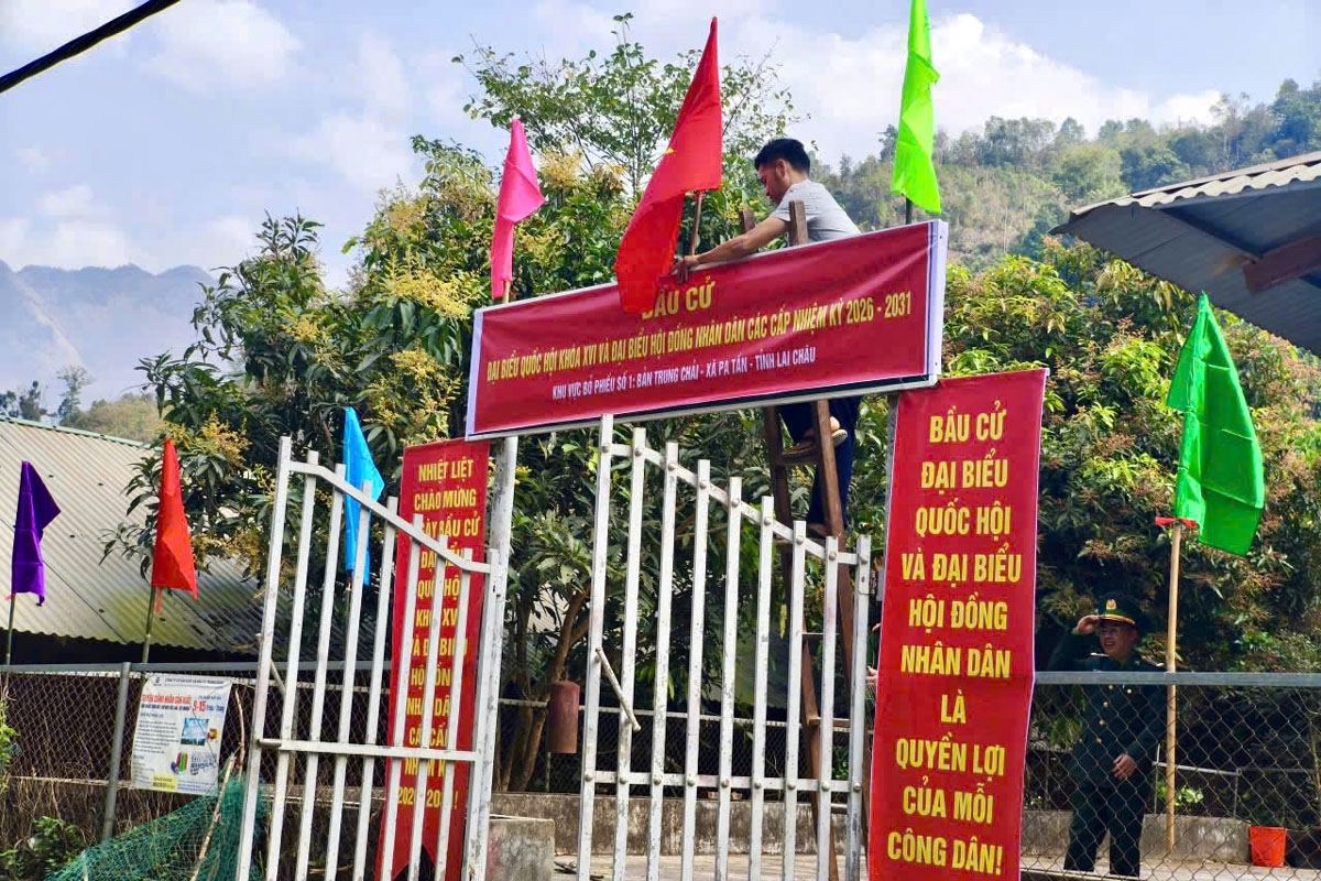 Hâur luz tsêr ntông nhoz jos Trung Chải 2, têx cán bộ xã, chiến sĩ pênhz phax tsênhv chêx chôngk heik kriê trâu pox nhuôk pâuz lok cử tri li qênhx thiêz hâux lưv tsuv uô, lok tsưr ziv tso ntơưr thiêz đeiv ntơưr bo xeir li ziz njiêz.