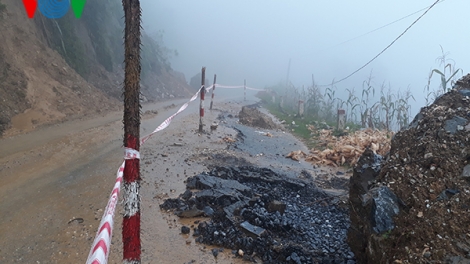 VOV4.VN - Chiều 23/7, tại km 334 + 200, quốc lộ 4H, thuộc địa bàn xã Nậm Ban, huyện Nậm Nhùn, tỉnh Lai Châu, xảy ra sạt lở lớn, với khối lượng hàng nghìn mét khối đất đá, cắt đứt một đoạn đường và gây chia cắt tuyến giao thông chính của huyện Mường Tè với bên ngoài