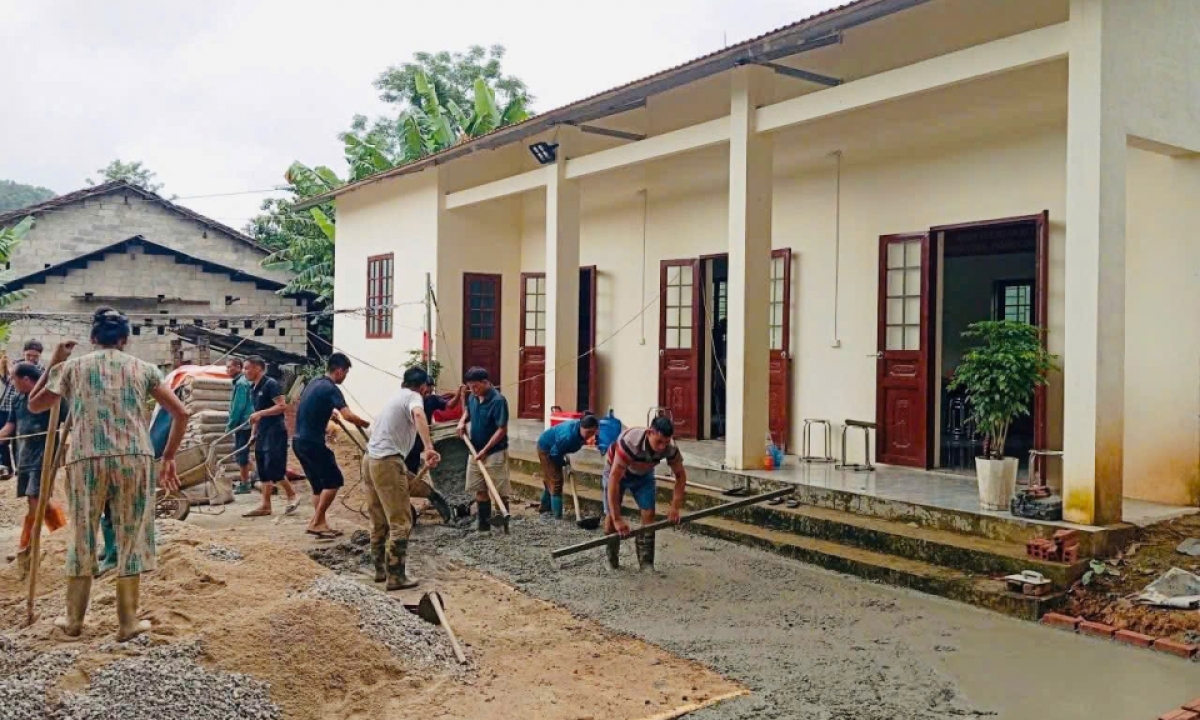 Chi ủy păn hẩư 58 đảng viên pang hưa tứng hỏm lườn pỉ noọng, tứng fấn viểc, chài Trường xày bại cần chang lườn hết cón chang cỏp vằn công; roọng riểc pỉ noọng au tôm hẩư sle hết quảng tàng chang bản, tàng khảu lườn. Pjom pện, pi 2025, bản Lam Sơn Thượng pjái bê tông đảy ái thâng sloong cái hin tàng chang bản, pang hẩư pỉ noọng pây tẻo vạ hết kin hẳm khoay ngải. Bí thư Chi bộ Mã Xuân Trường cạ: Dú bản, hạy cạ đảng viên, ết lẻ cần hết cốc hạy cạ nắm tứn hua hết cón lẻ roọng riểc pỉ noọng hết nèm xẹ khỏ. Lèo păn slọ viểc hẩư tứng cần, hết thâng tầư pền thâng tỉ lẻ chắng hết nèm đây Nghị quyết chang tởi slổng ăn vằn.