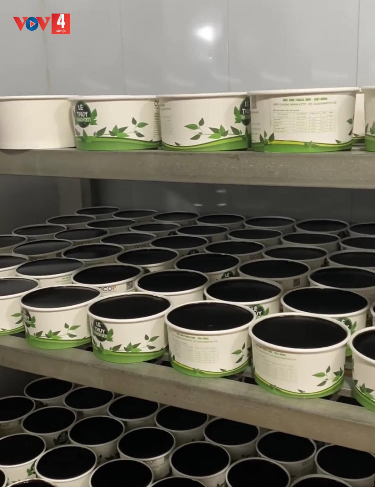 Chị Thùy: Cũng có nhiều nước muốn hợp tác để đưa sản phẩm thạch đen sang nước ngoài. Nhưng cái hạn chế của thạch đen là hạn sử dụng ngắn ngày, mình không dùng chất bảo quản nên sẽ không để được lâu nên chưa thể xuất khẩu sang nước ngoài được. Hiện tại các chuyên gia cũng đang nghiên cứu cách sản xuất để thạch đen thành phẩm đủ tiêu chuẩn xuất khẩu.