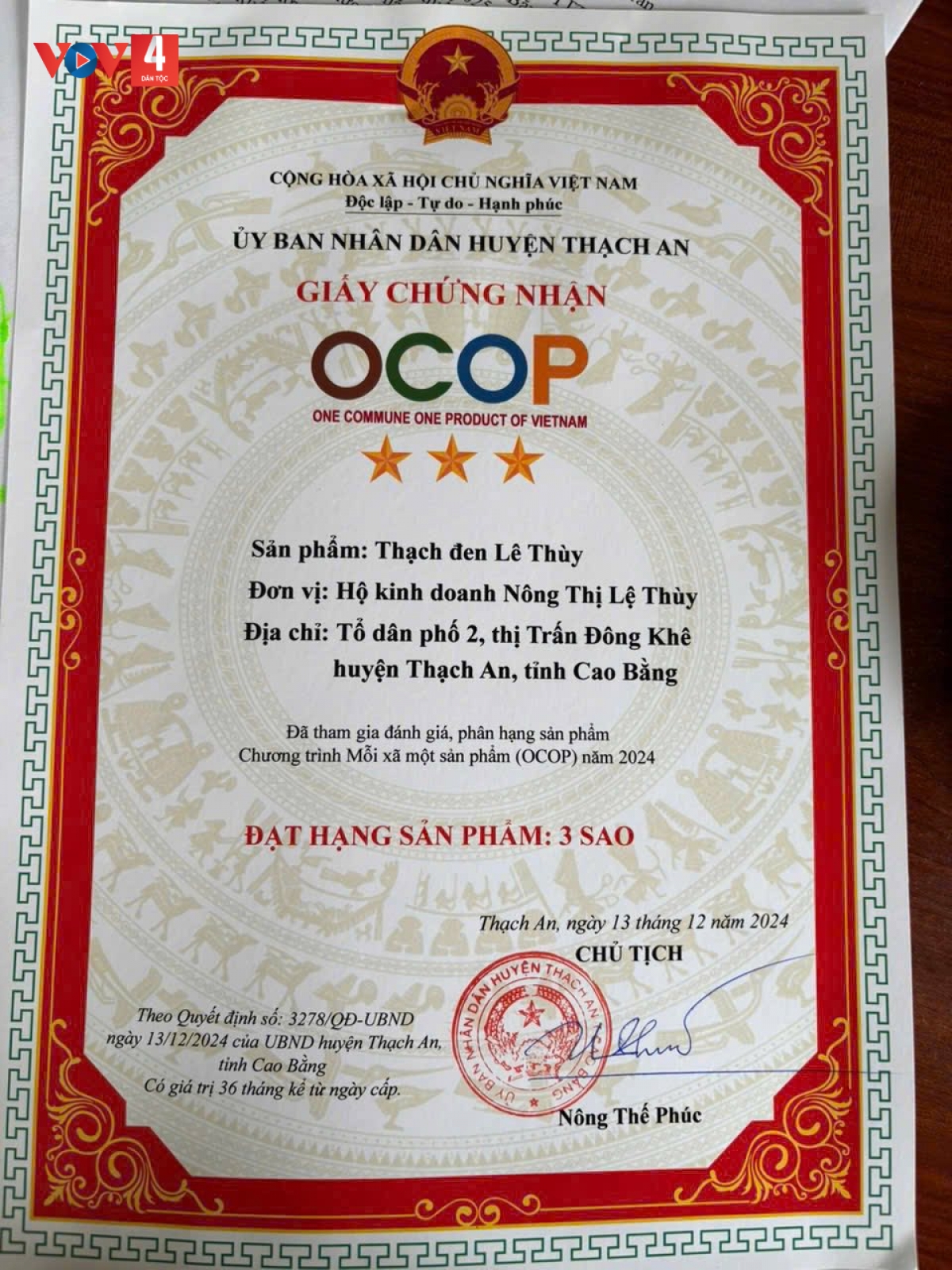 Chị Thùy: Trước mắt tôi có rất nhiều dự định, dịp cuối năm, đầu năm rất nhiều tỉnh, thành đều tổ chức hội chợ OCOP nên tôi sẽ tham gia các hội chợ để quảng bá sản phẩm. Như mới đây tôi cũng có gian hàng tham gia hội chợ ở cung cá heo (tỉnh Quảng Ninh), Lễ hội mùa thu tại Đông Anh (Hà Nội), hội chợ xứ Đông, Hải Phòng tôi cũng đều tham gia hết. Qua các tuần hội chợ như thế, thứ nhất là giúp mình tiêu thụ được nhiều sản phẩm, thứ hai là được nhiều khách phương xa biết đến không chỉ mua tại hội chợ mà sau đó mình đi về rồi có rất nhiều khách gọi điện đặt mua. Ngoài ra tỉnh Cao Bằng cũng tổ chức nhiều hội nghị xúc tiến thương mại hợp tác đầu tư với các nước như Trung Quốc, Hàn Quốc, Thái Lan tôi cũng đều tham gia với mong muốn sản phẩm thạch đen của địa phương mình được vươn xa hơn, phát triển hơn nữa.