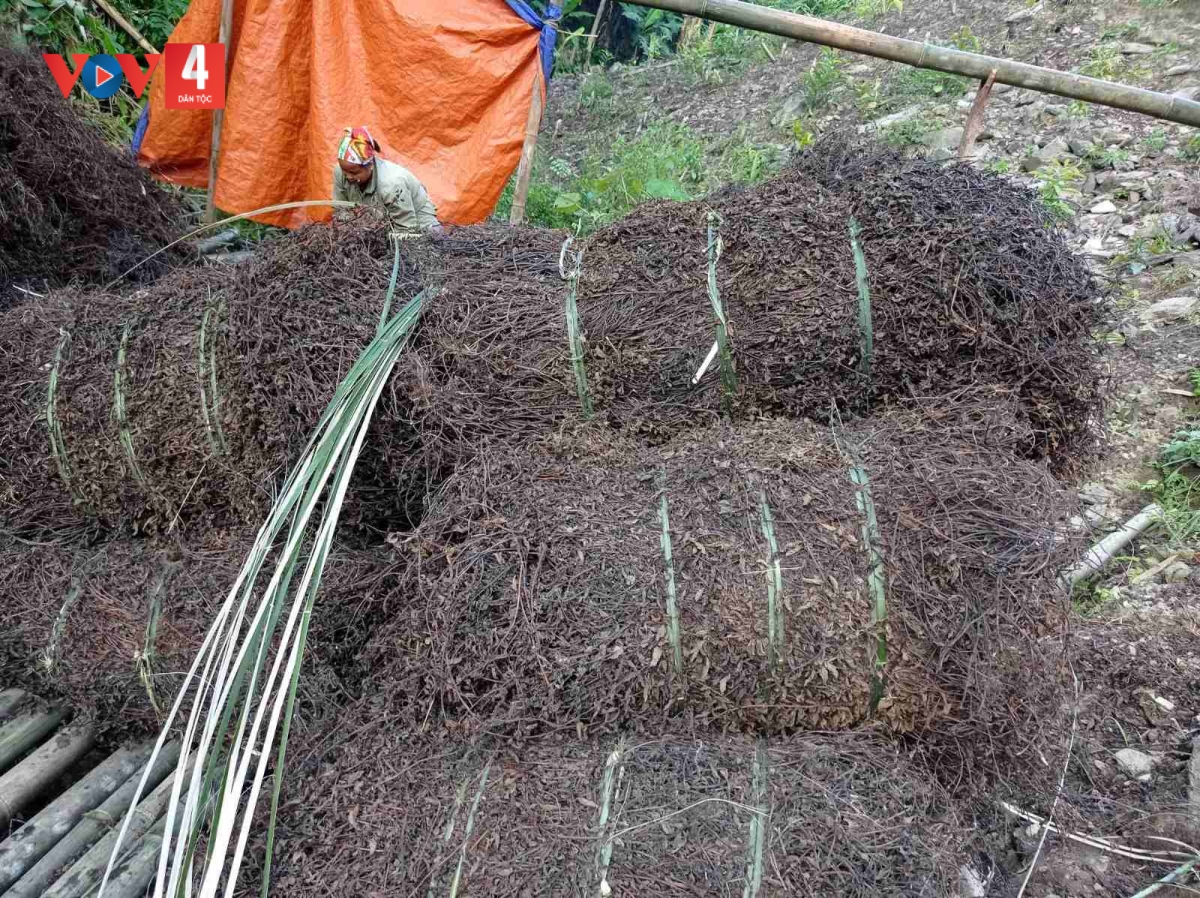 “Cây thạch đen là loại cây ưa đất ẩm nên chỉ trồng được vào những ngày mưa, còn trời nắng mình trồng thì cây thạch sẽ bị chết, không mọc lên được. Nhà tôi ít người, không đủ nhân lực nên chỉ trồng được khoảng hơn 3000m2 thôi. Hai năm nay thạch được giá khoảng 60.000đ/kg nên mỗi năm gia đình tôi thu về được khoảng 40 triệu đồng, nói chung cũng được nhiều hơn trồng sắn. Trồng ở nơi đất tốt thì sau khi trồng được khoảng 2 tháng cây thạch lên xanh tốt lắm, chỉ cần bón phân lân một lần là được, sau 4 tháng là được thu hoạch. Sau khi thu hoạch mình lại lấy gốc cây thạch về ươm ở đất ruộng giữ giống cho vụ sau.”