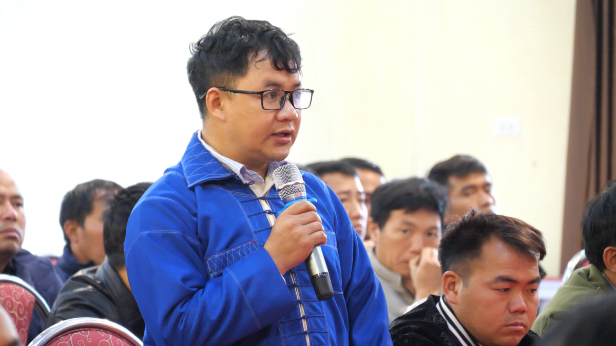 Pọm cắp vịa chôm choi pưng chương trình vịa dệt, cử trì cọ xư mình vạu khửn lang phắư chằư mon khòng chảu cắp pưng côn chi tàng nả hẳư quam pák khòng chảu nẳng Quốc hội. Cử trì Nguyễn Thị Nội, dú nẳng xã Lương Thịnh, tỉnh Lao Cài va: “Xum hỏi mòng cong pưng đại biểu cuồng nhiệm ky nị chi mi lài quyết sách ma tang mả khày kình tế, vằn hoá, thể dục thể thào; lan lay xìa ứt dák cặt cung, tẳng tánh bản na mắư nẳng địa phường”.